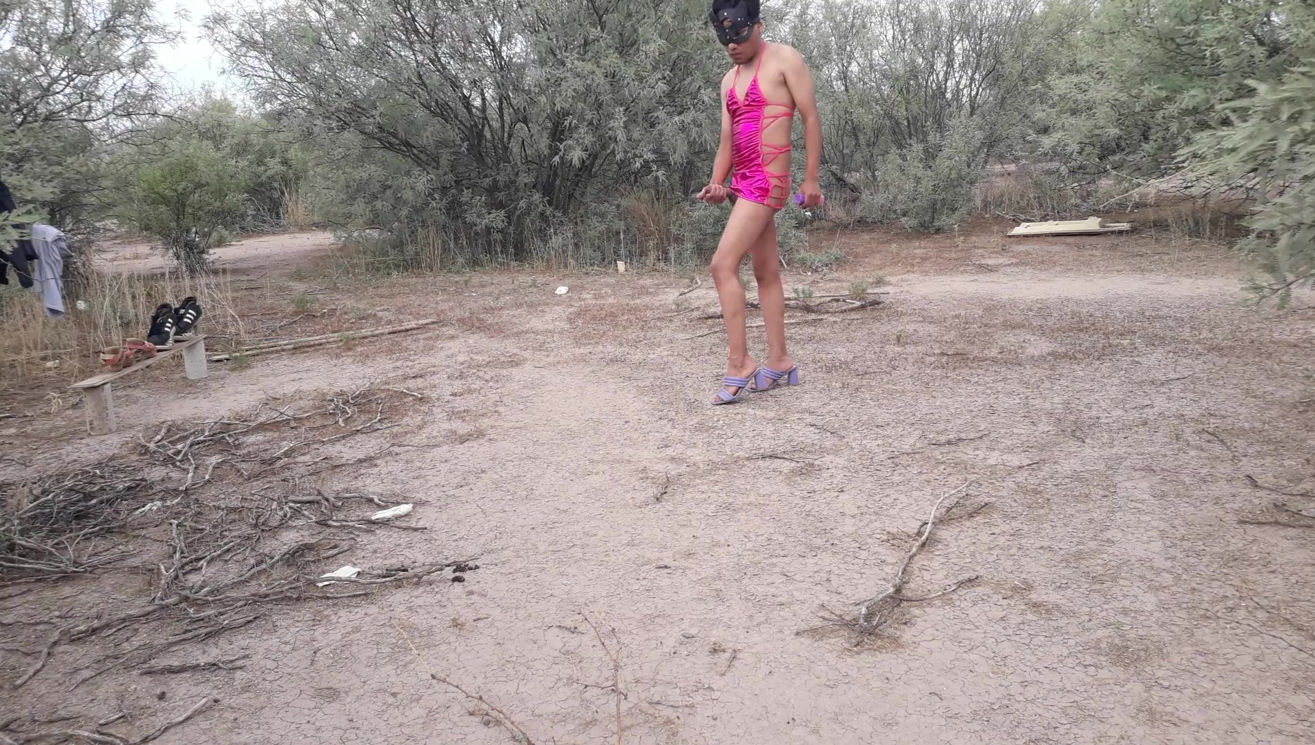handsome barbie trans deliciosa con minivestido tanga butt-plug buttfuck de zorra y tacones caliente
