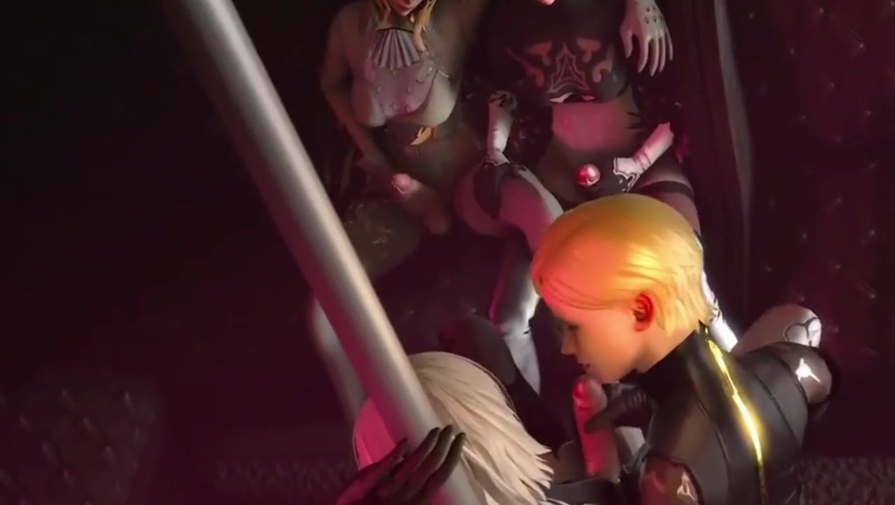 futa automata fuckfest gang-bang they all fap looking at each other gang-fuck