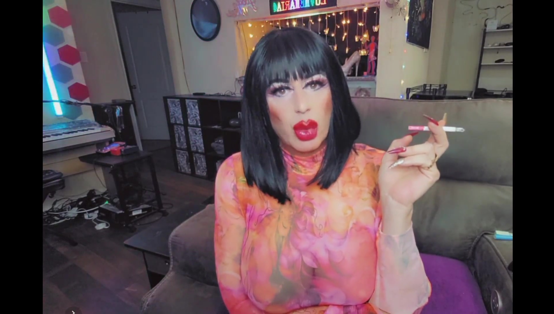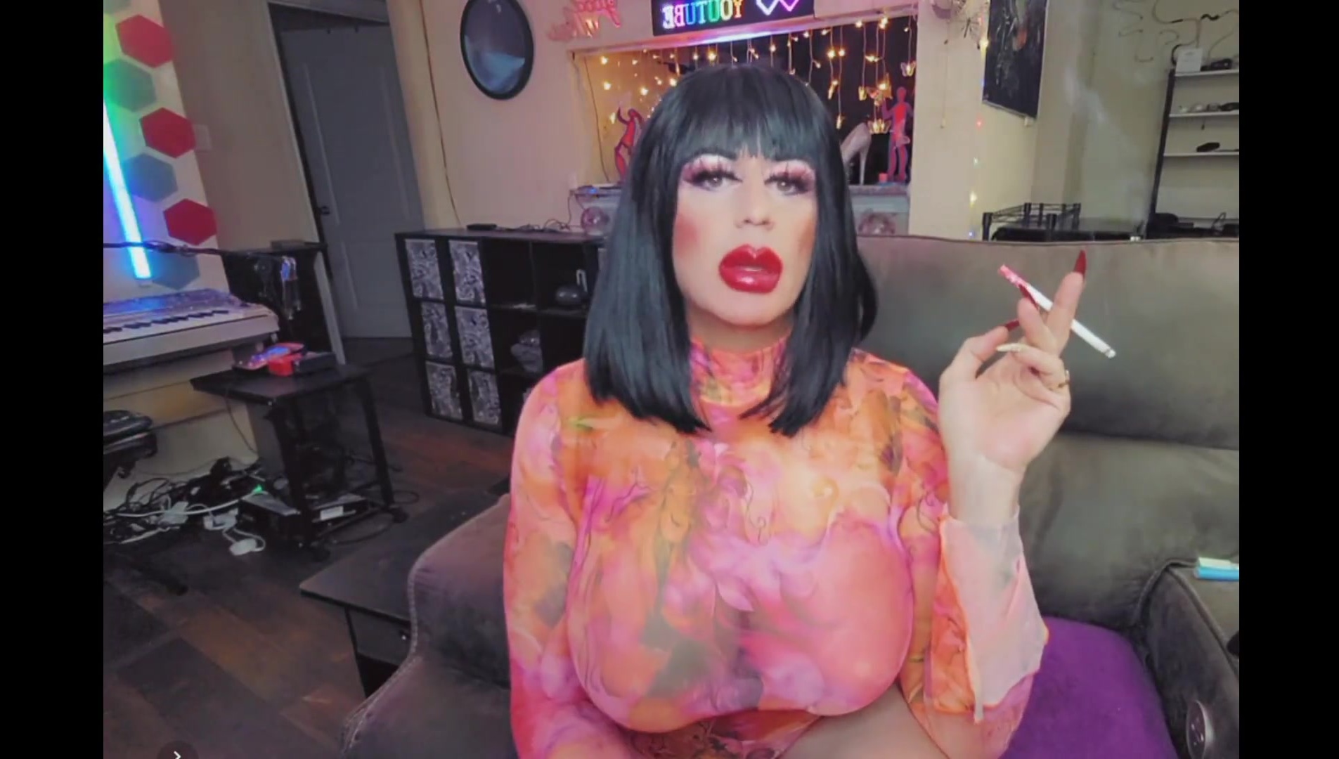 Glorious cherry crossdresser smoking with monstrous lips lip liner cross dressing ...
