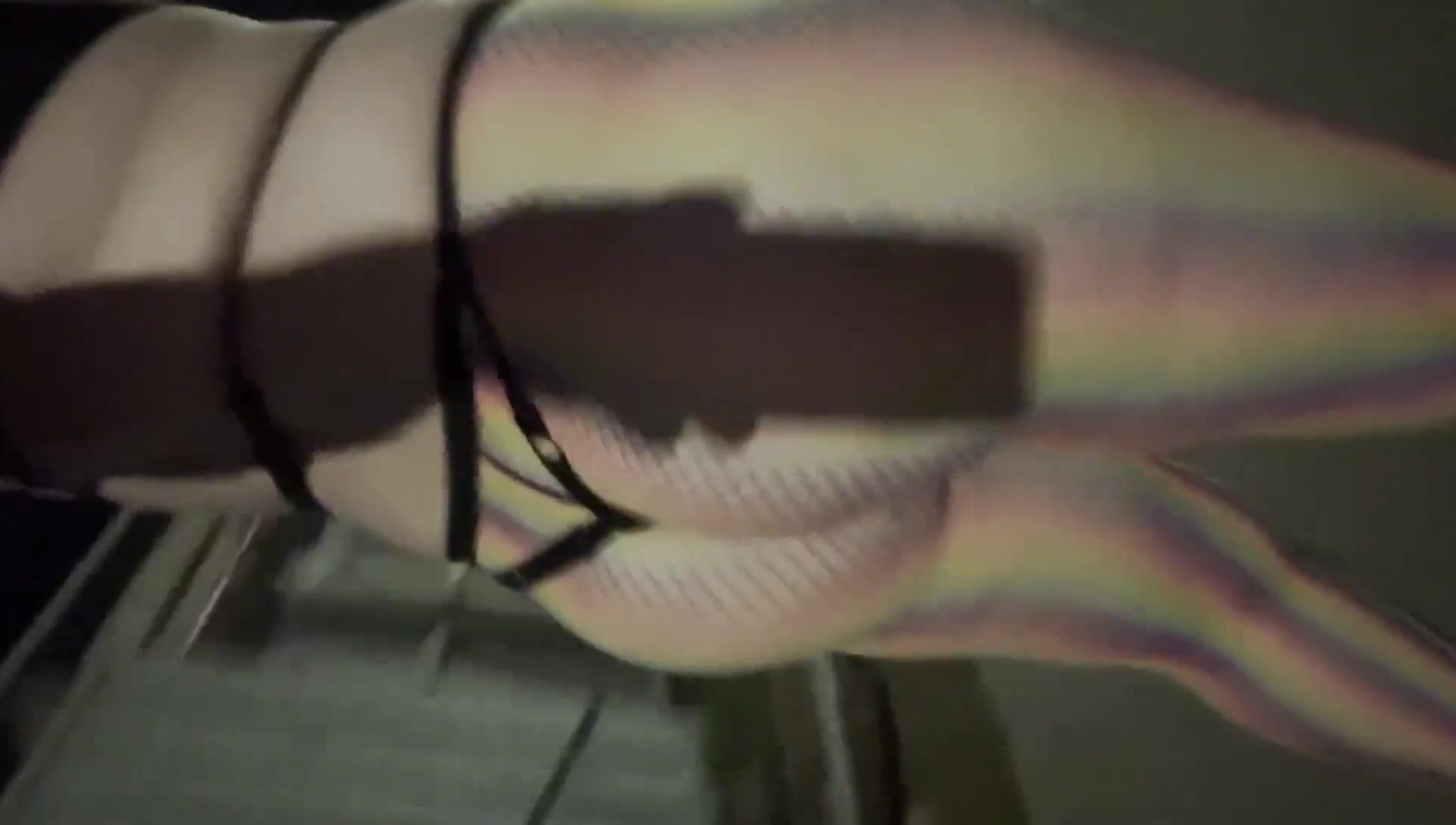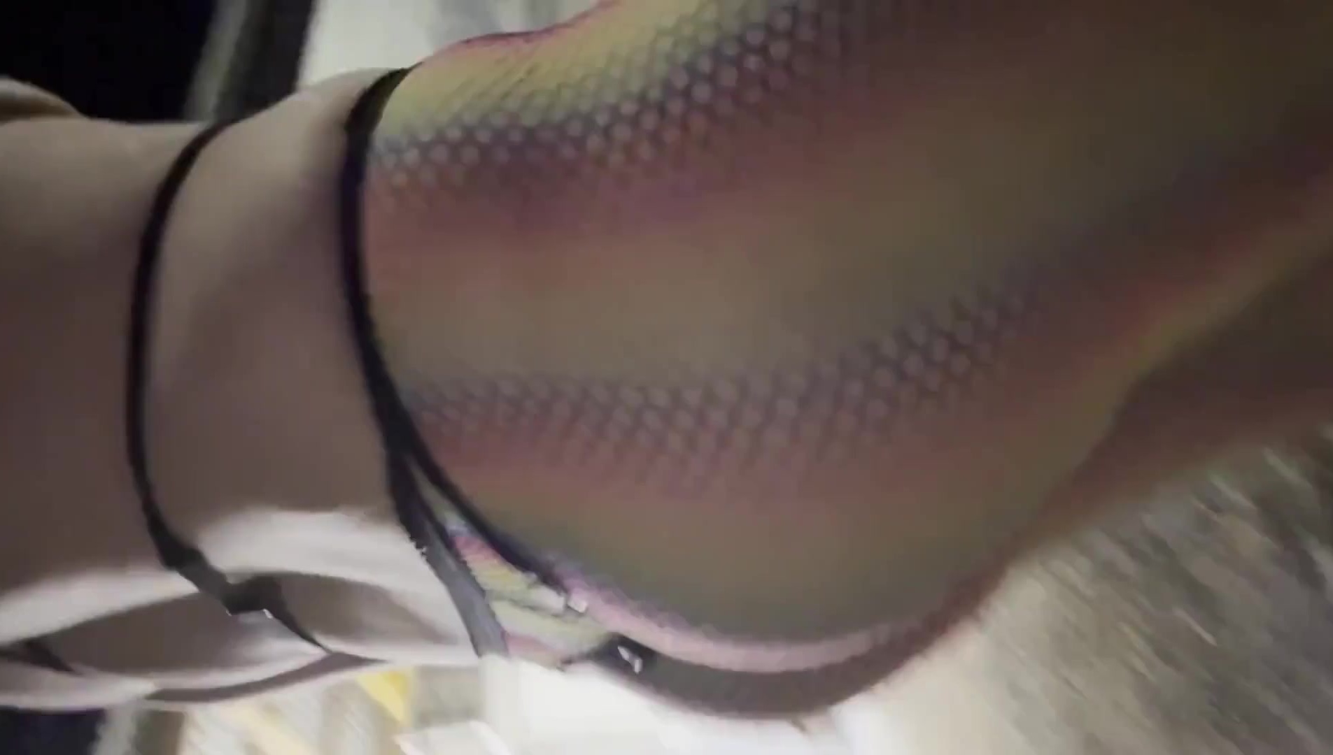 The sissy bitch out for a walk in an all-PVC garment (stocking, garter belt, mini-...