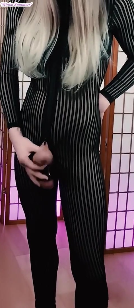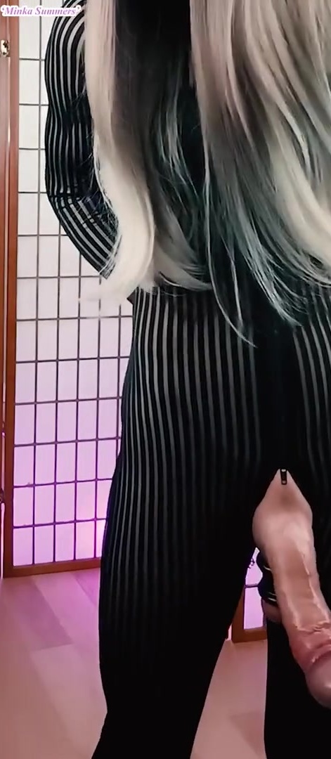Good-Sized Boner Tgirl stringing up massive immense floppy fuckpole with nutsack spread