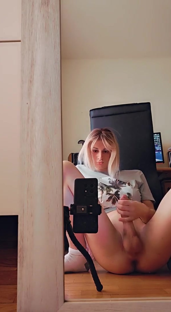 See me have fun in the Mirror - She-Male Strokes (Gigantic money-shot)