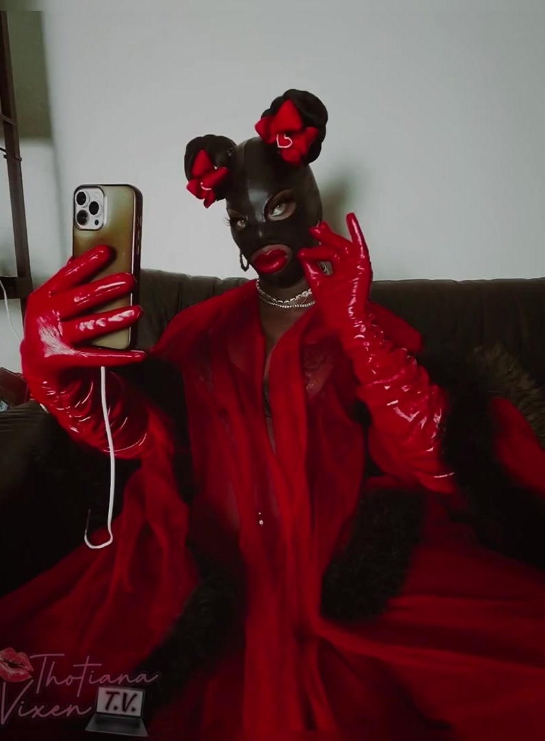 Black Shemale milks her ten inch BIG BLACK COCK and Testicles!