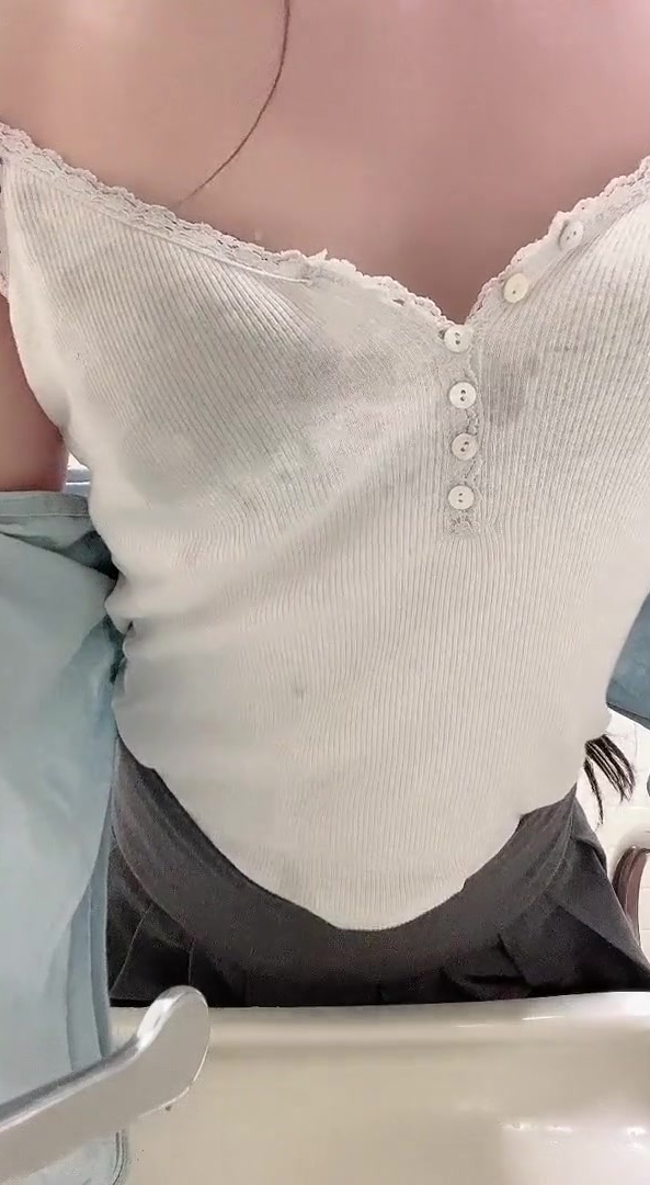 Latina t-model Bruna Castro disrobing and stroking in a public wc