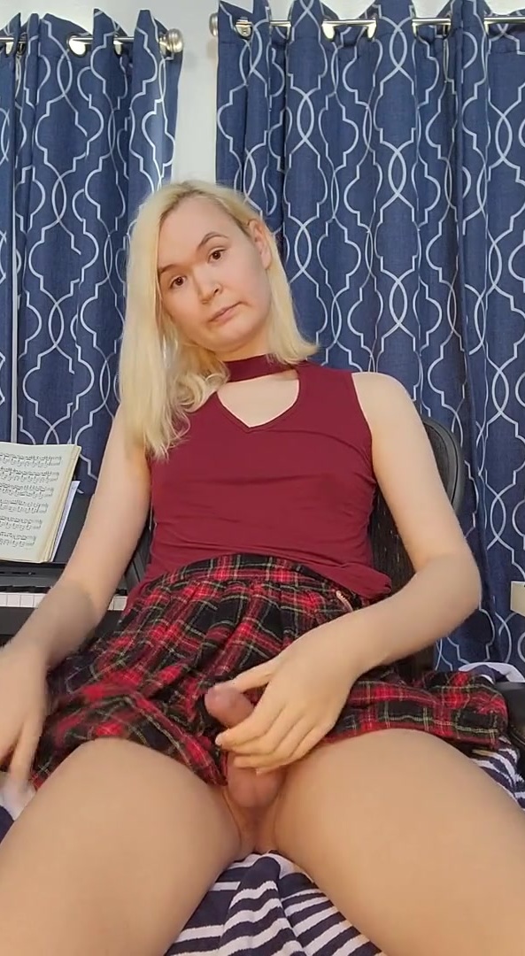 Sandy-Haired t-girl in yellow mini micro-skirt milks off till popshot