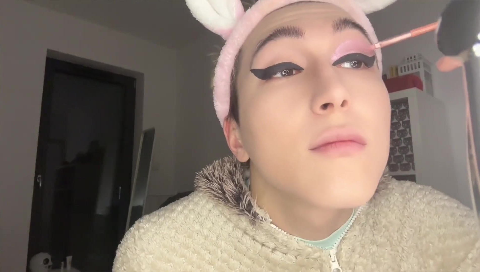 Torrid mind-blowing crossdresser smoking with strenuous make-up and lots of lip li...