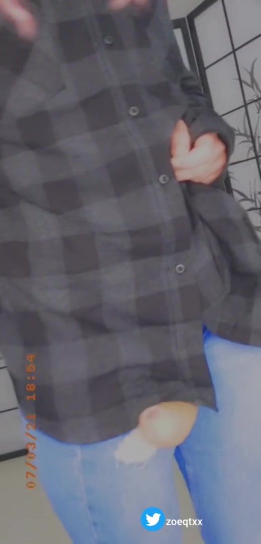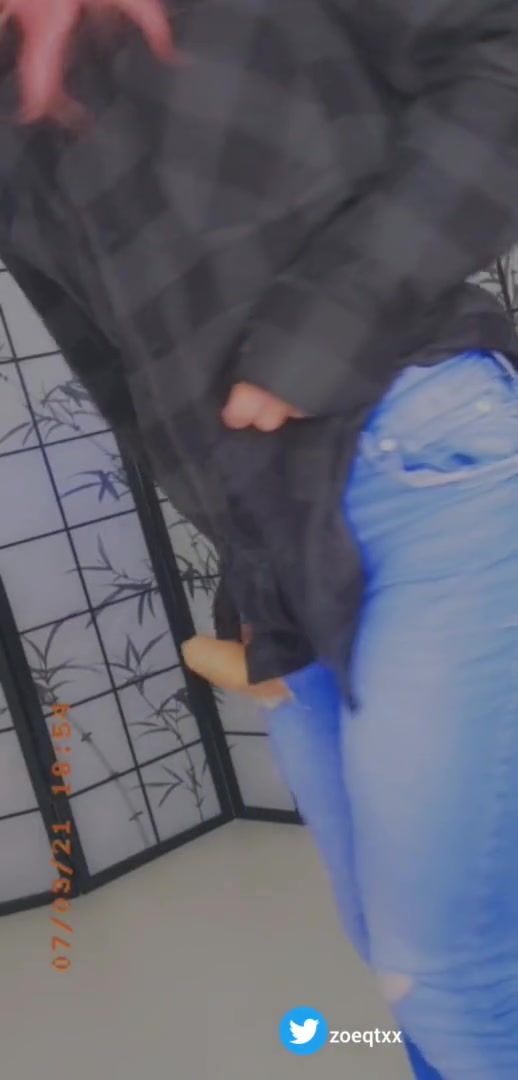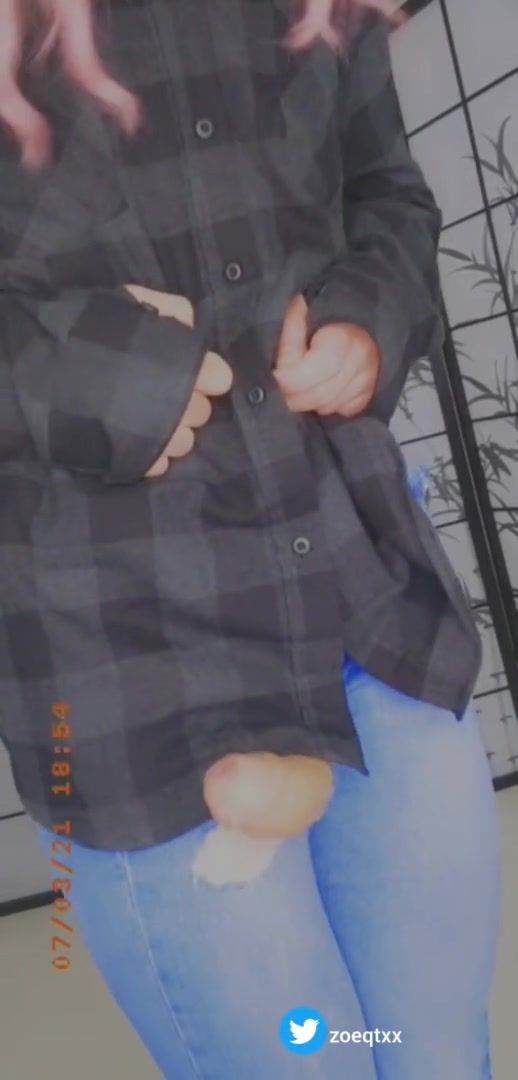 Sandy-haired transgender princess in blue denim faps her furry shaft till phat mon...