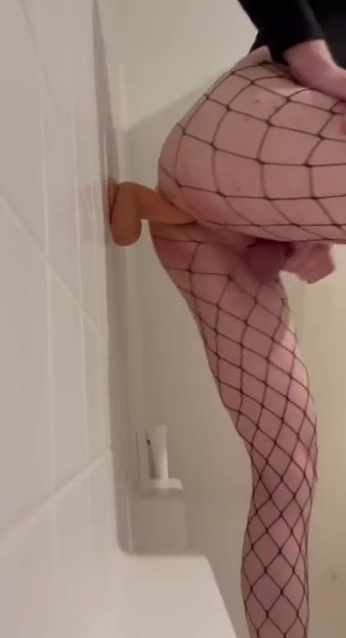 Breedable trans doll Kendal Sus shagging herself in the douche