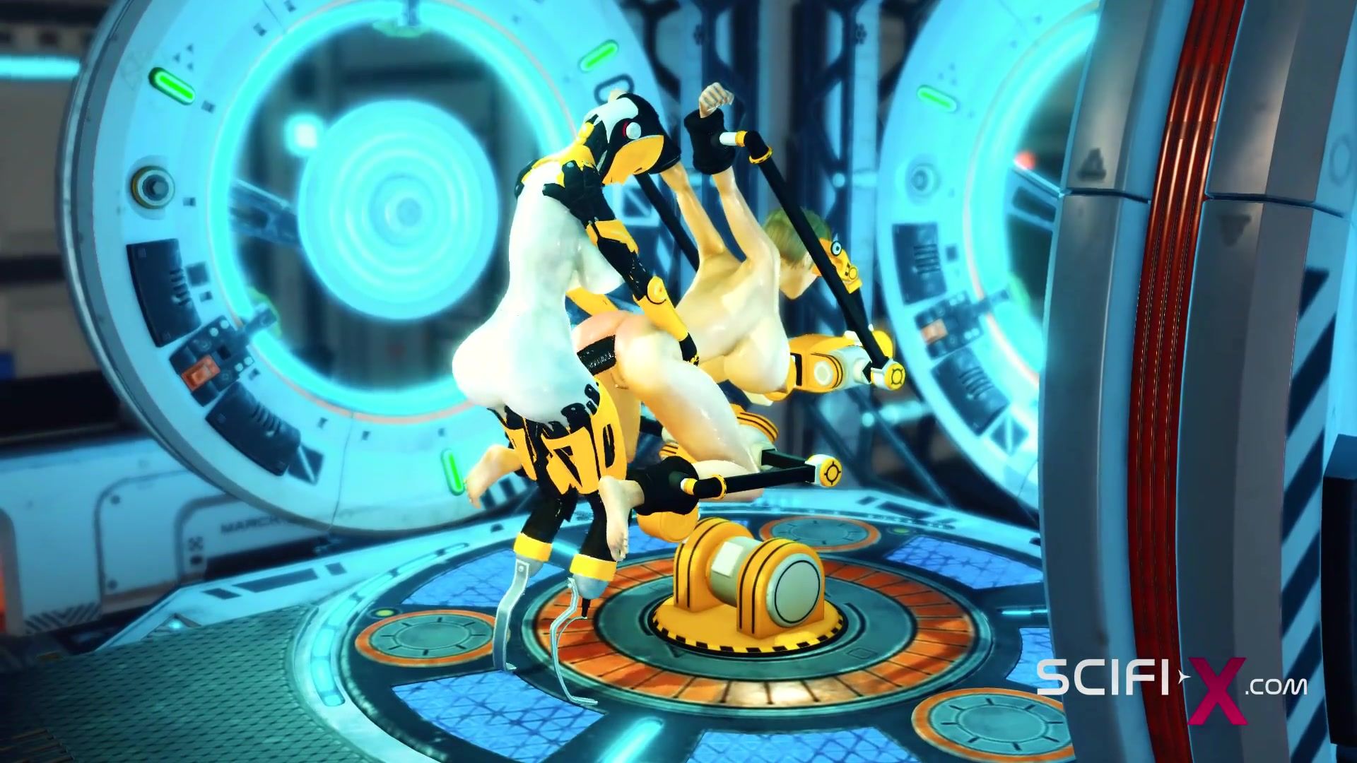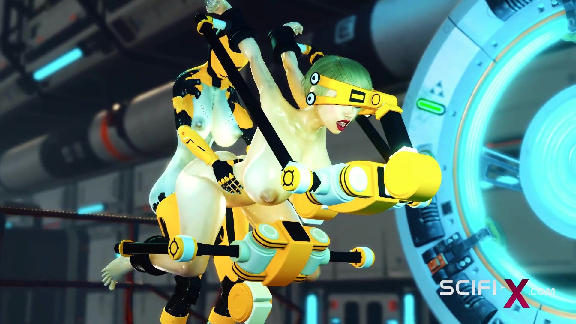 Sci-fi DOMINATION & SUBMISSION handcuffed and penetrated. A gorgeous young sweetheart and ladyboy android in the lab