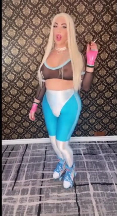 TRANSSEXUAL VIPER WICKY BONDAGE SUIT LATEX DENIM LARGE KNOCKERS MEATY LIPS HUGE HI...