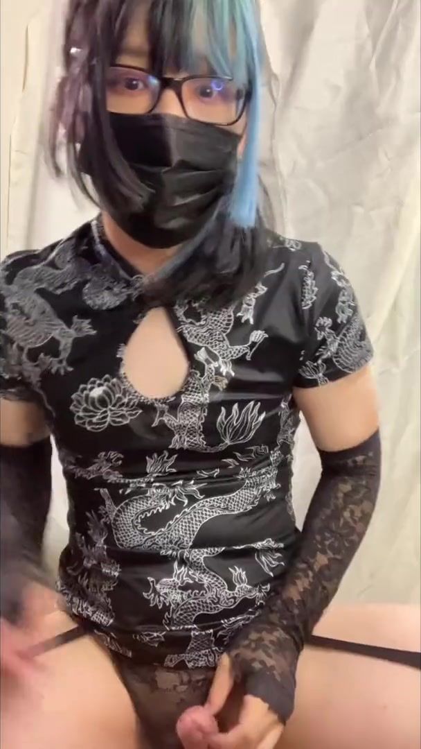青髪チャイナコス女装娘・ハードアナニーで射精✨