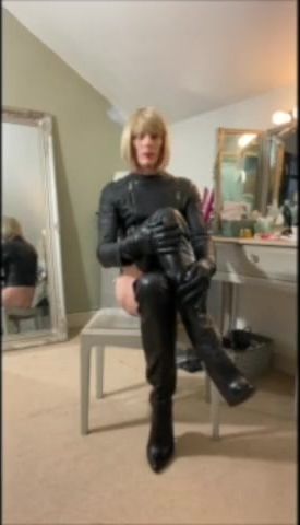 Kitty Thomson Strokiing her doll boner in black leather hip shoes