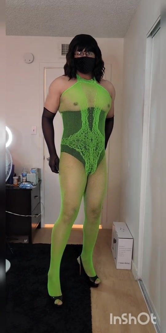 Green Chemise with Green Lace Boulder-Holder & G-String