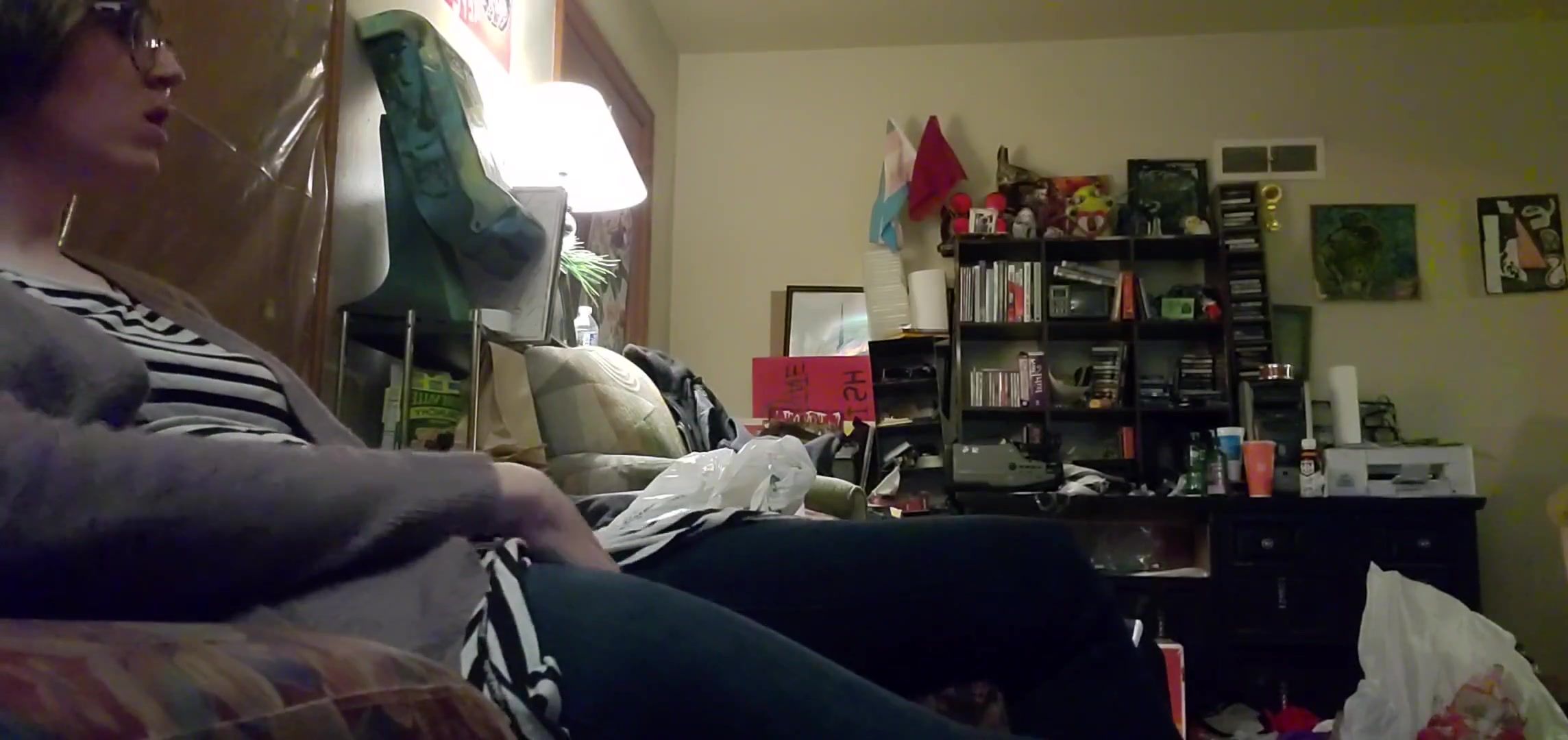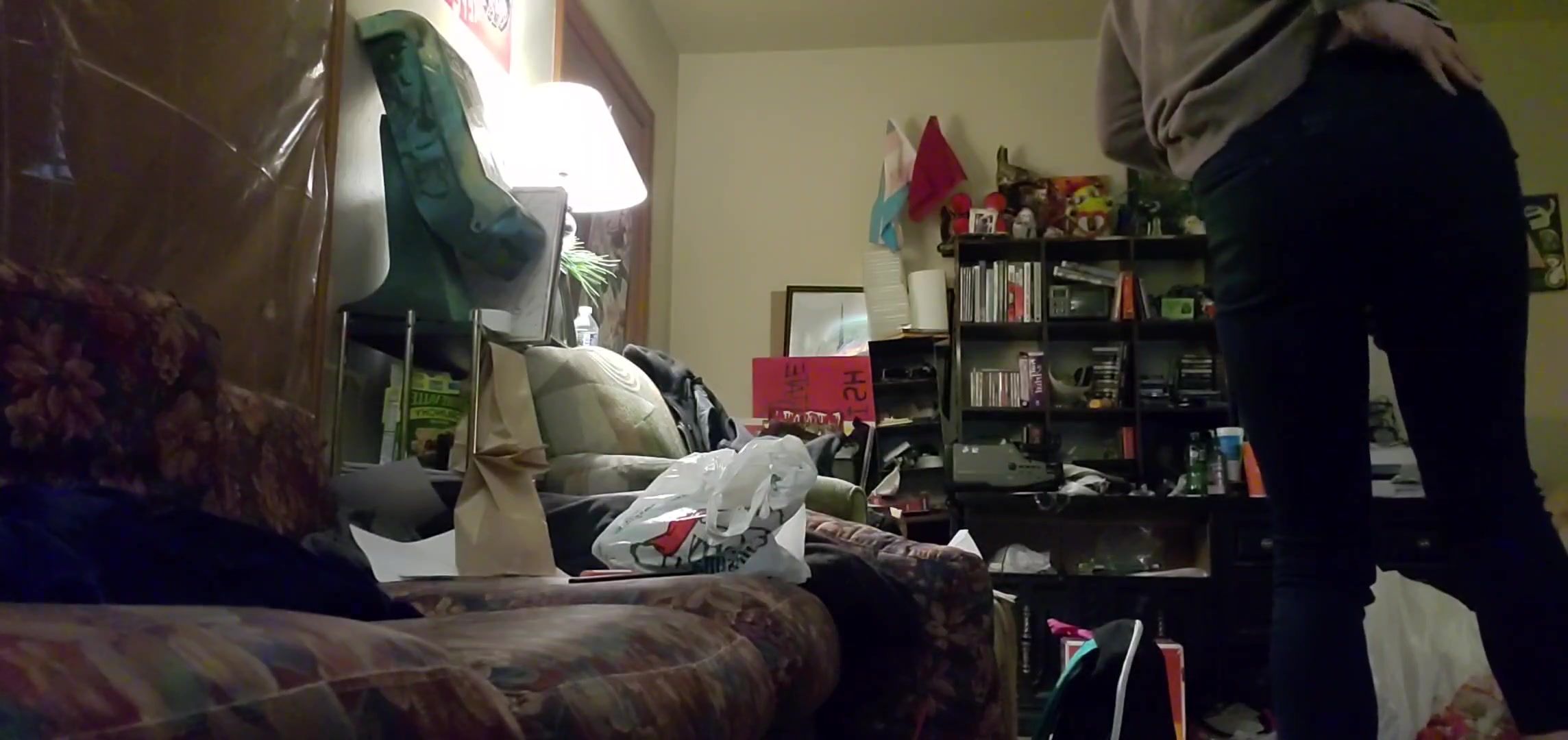 Ultra-Cute trans lady discreetly ejaculates in living guest room, while roomies in other bedroom