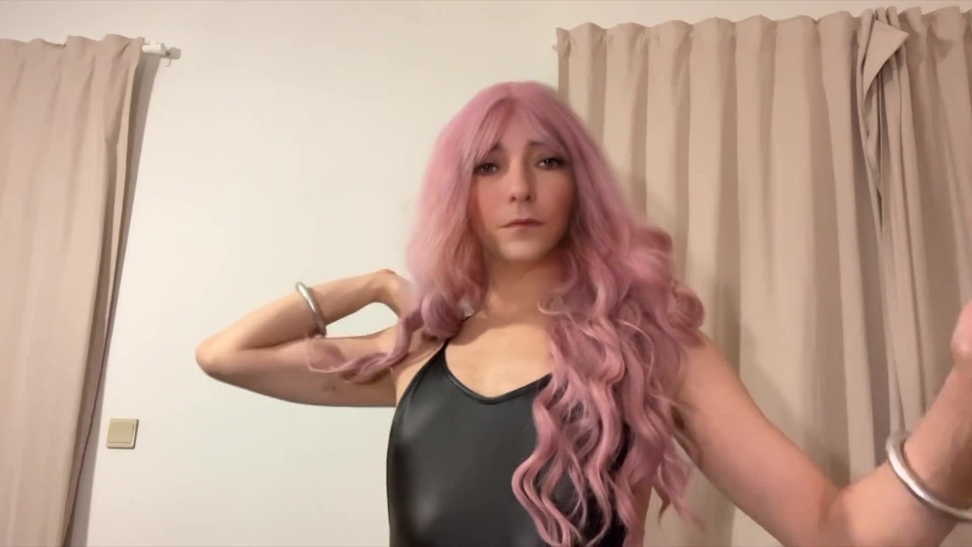 Pretty T-Model With Rosy Hair Draining Off On Webcam on DickGirls.xyz