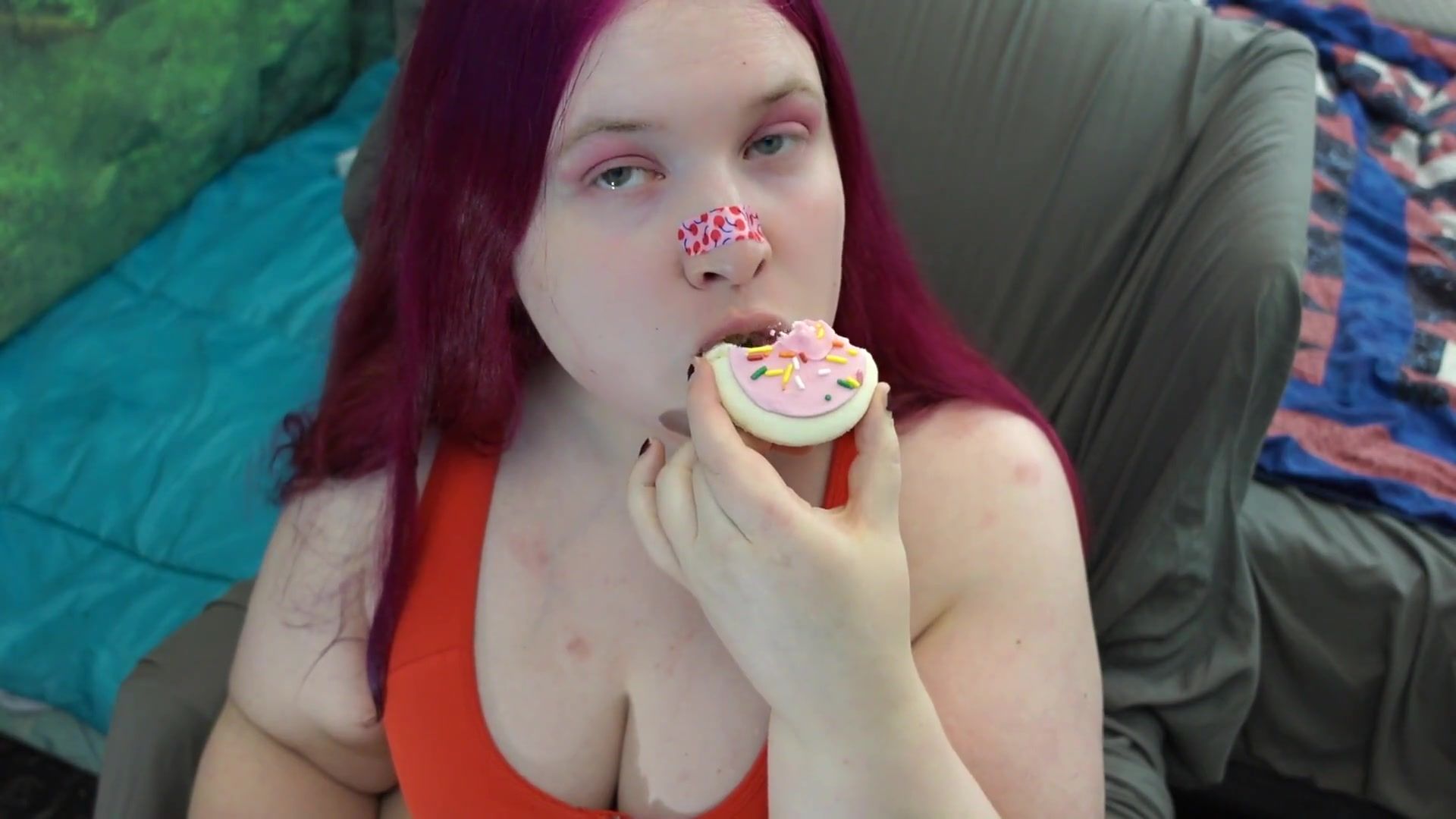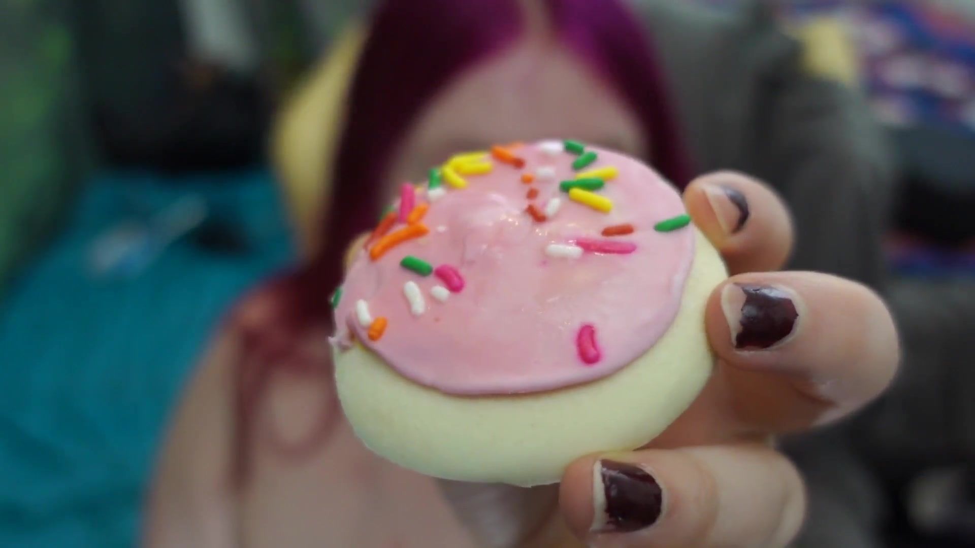 Round T-Girl Finishes Off on Cookie with Immense Man-Meat and Slurps It POINT OF VIEW Food Have Fun