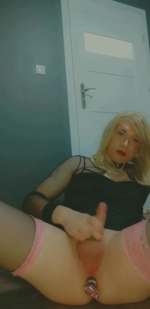 Trans chick toying with her bung assfuck butt-plug and tail.. jizzing giant explosion of man-lava railing fake penis