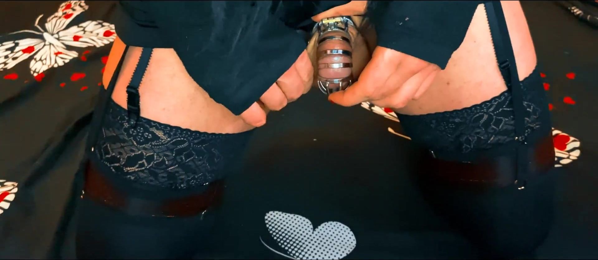 Platinum-Blonde She-Male COUGAR Nutting & Peeing