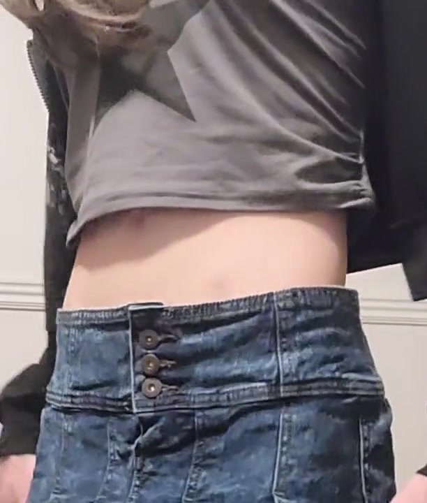 Trans Gurl She-Male adjusts cock-squeezing miniskirt