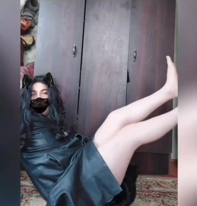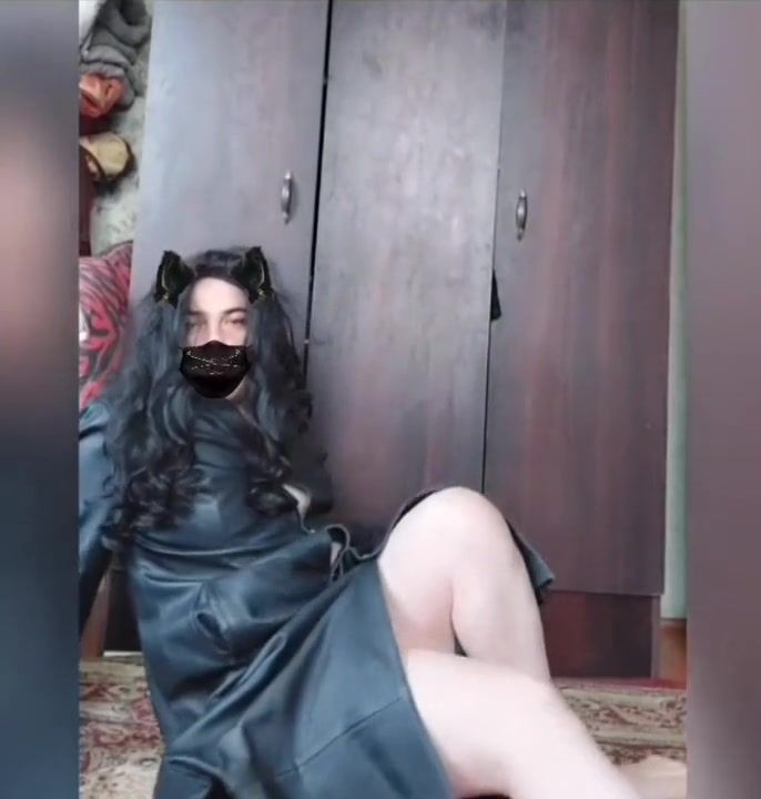 Crossdresser Kitty Leather Coat Sunglasses and Handsome Boulder-Holder Congenital ...