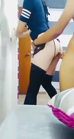 Hermosa amiga en minifalda y lenceria le encanta que le den por el caboose y la llenen