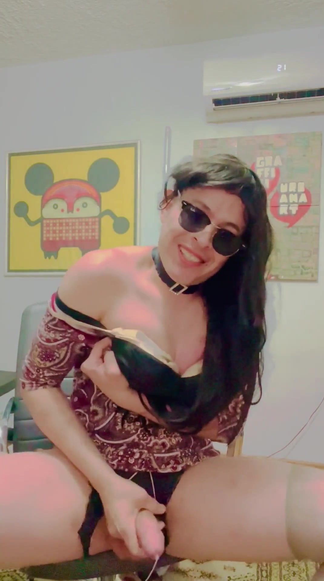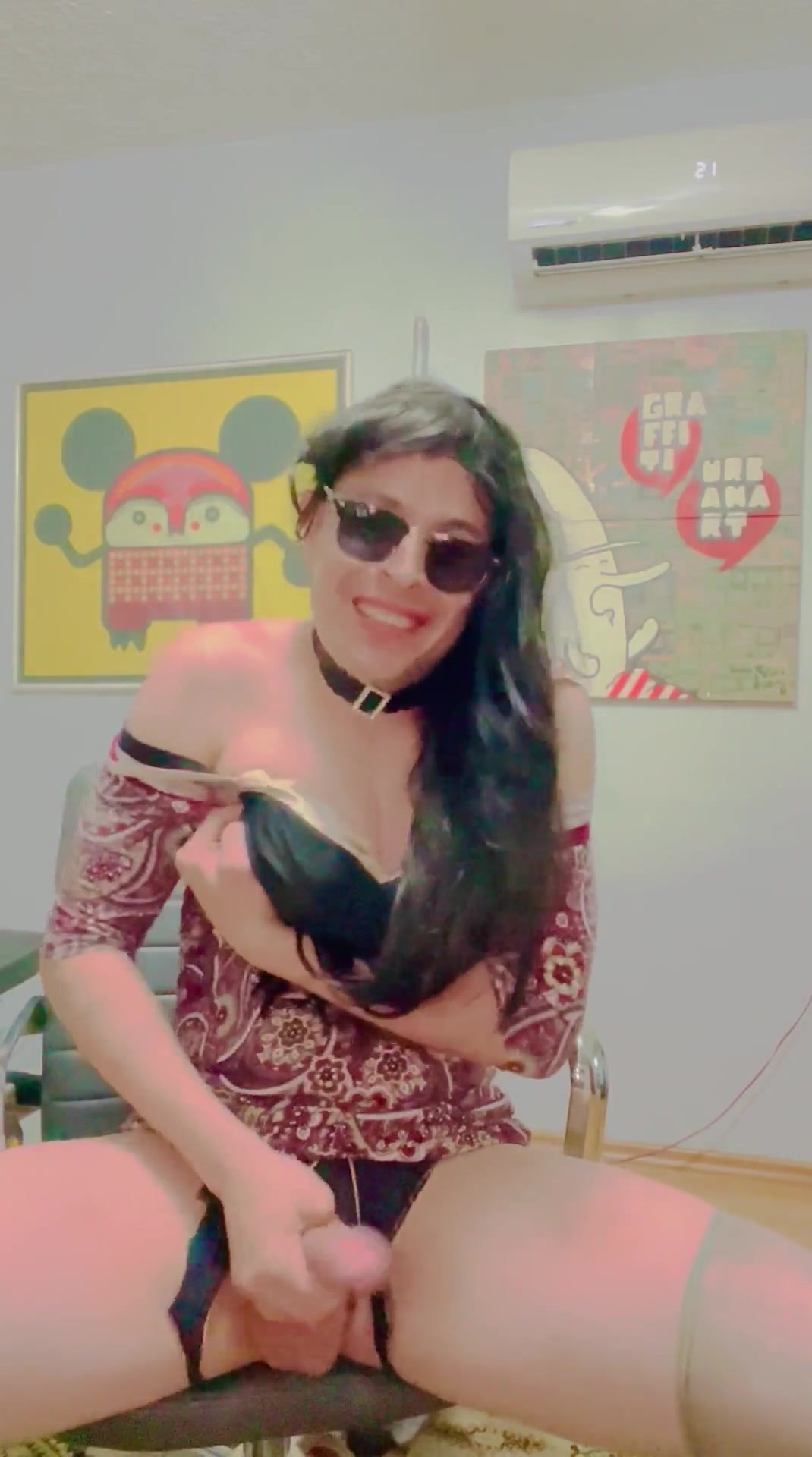 Femboy en lenceria y pantis se masturba y se corre frente a ti