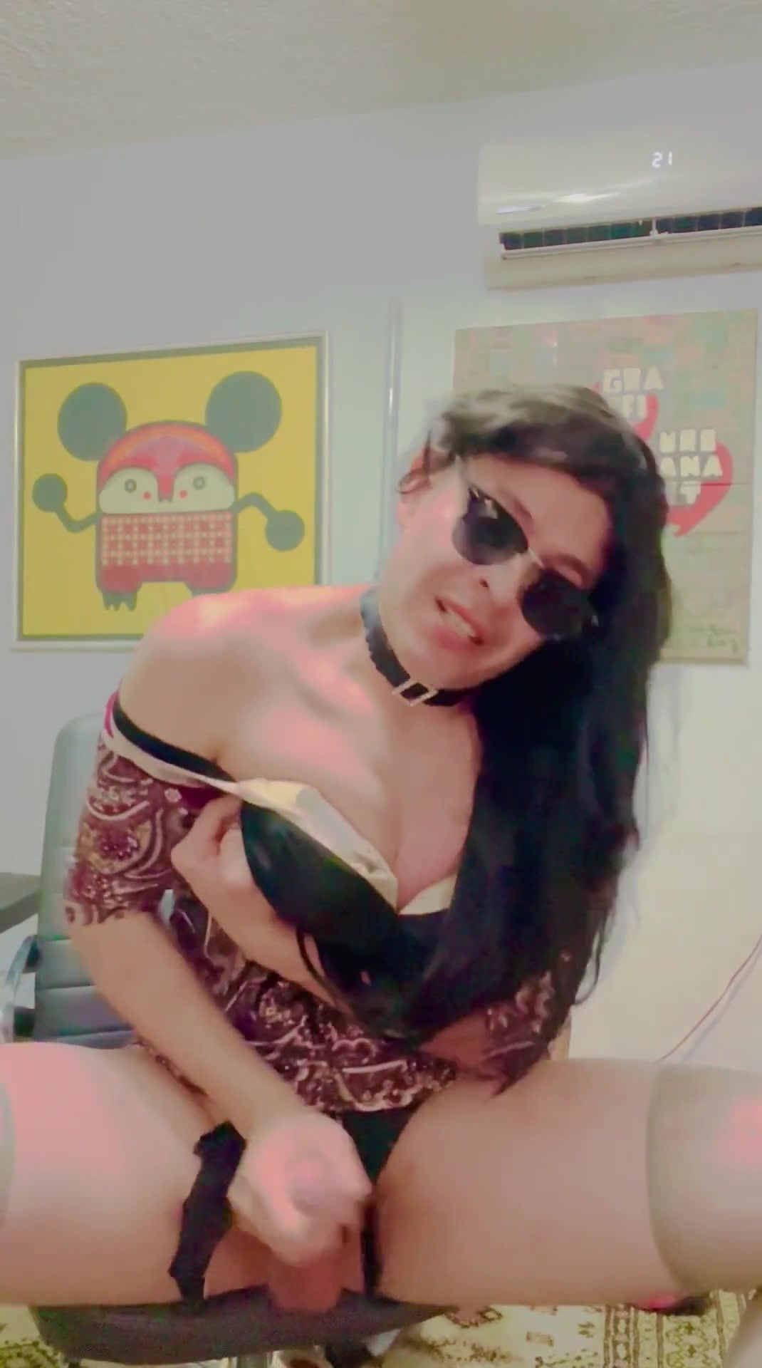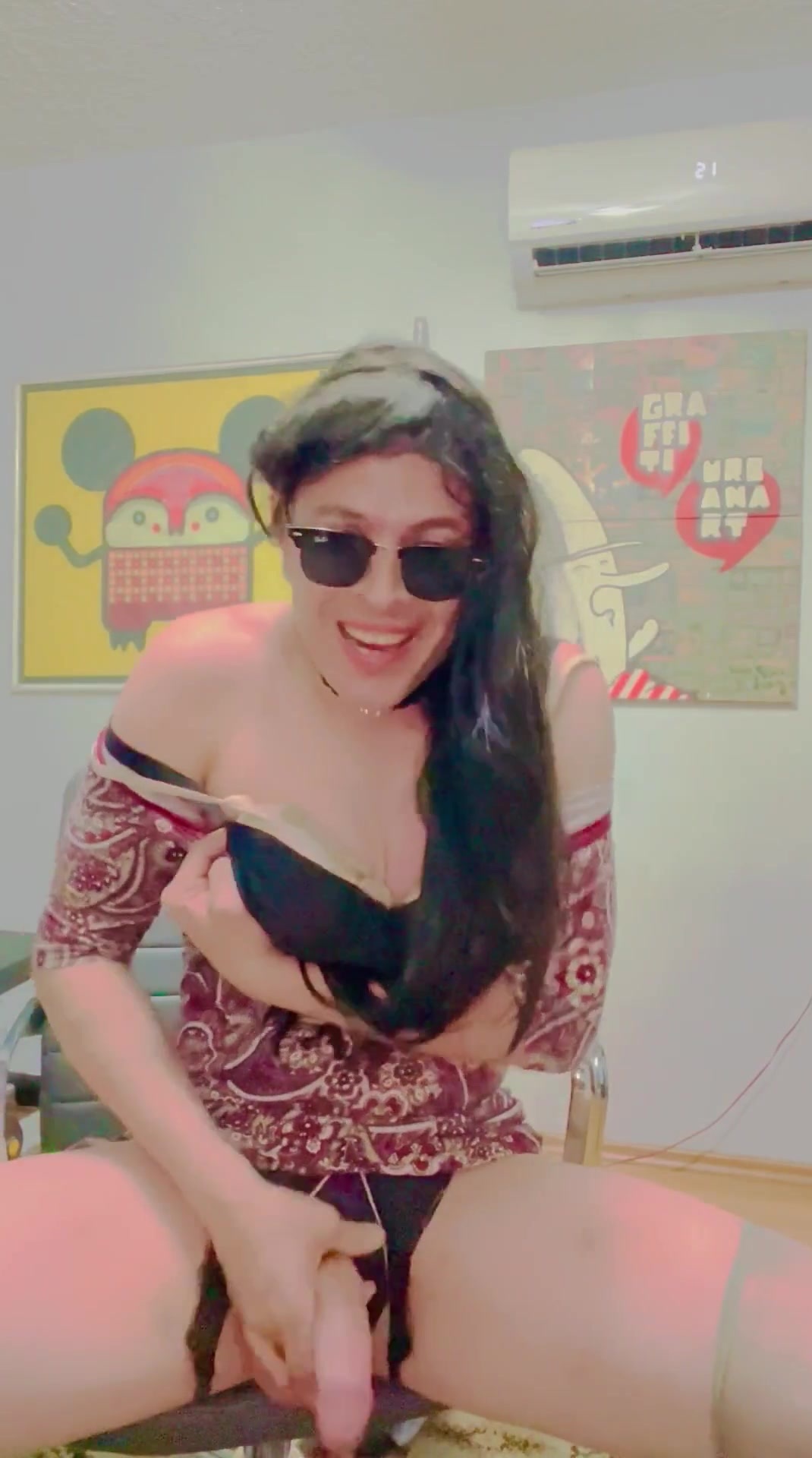 Femboy Trans en lencería se masturba mientras hace Ahegao