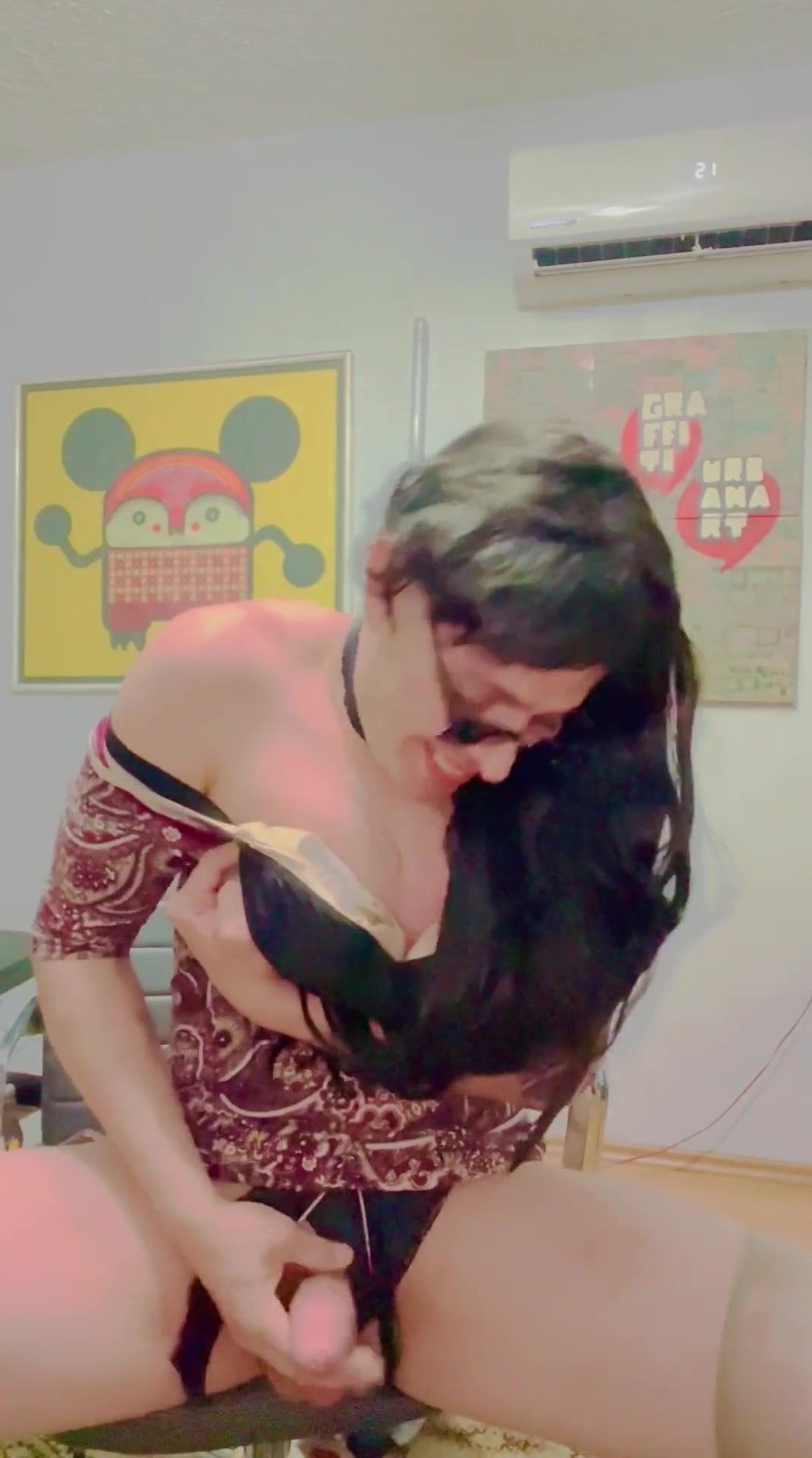 Femboy se masturba mientras salta en fuck stick vibrador ♡
