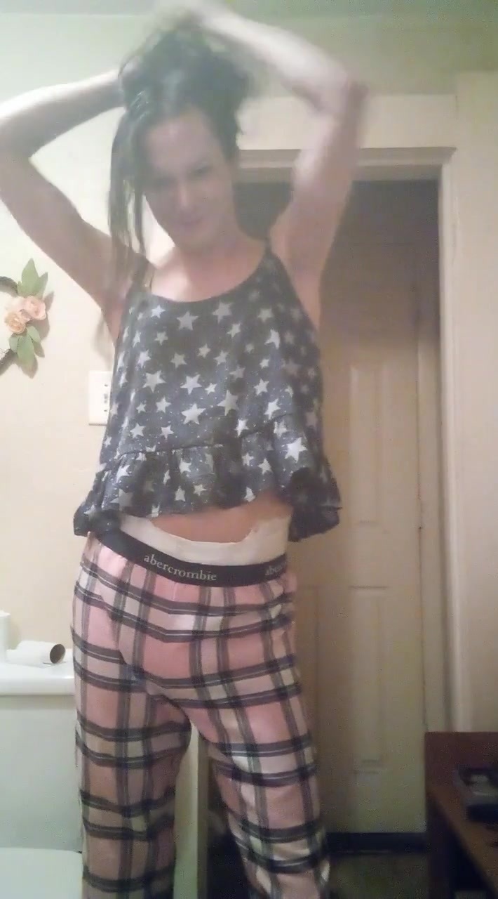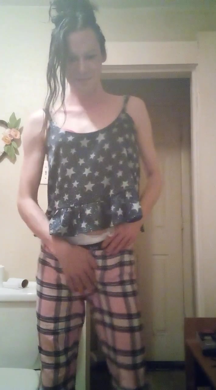ladyboy sissy foolish millie wets her nappy and puts her pyjamas back on.