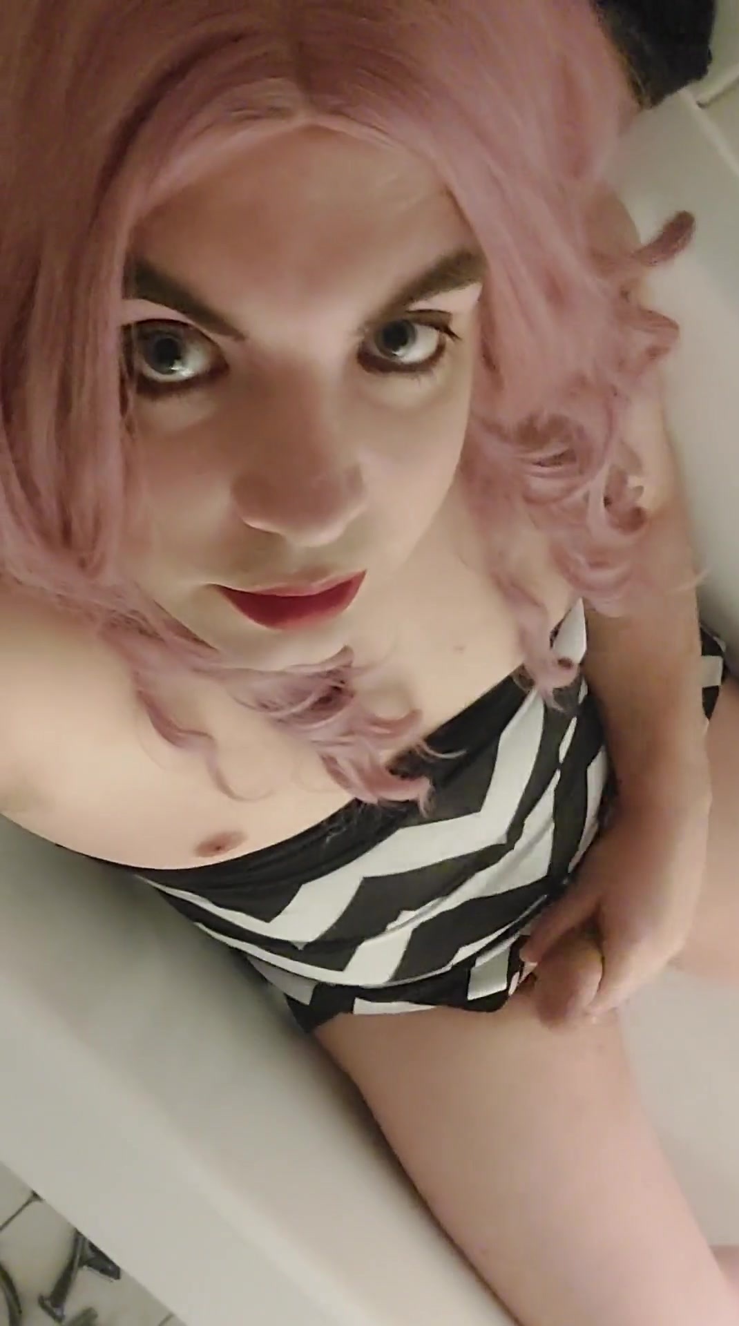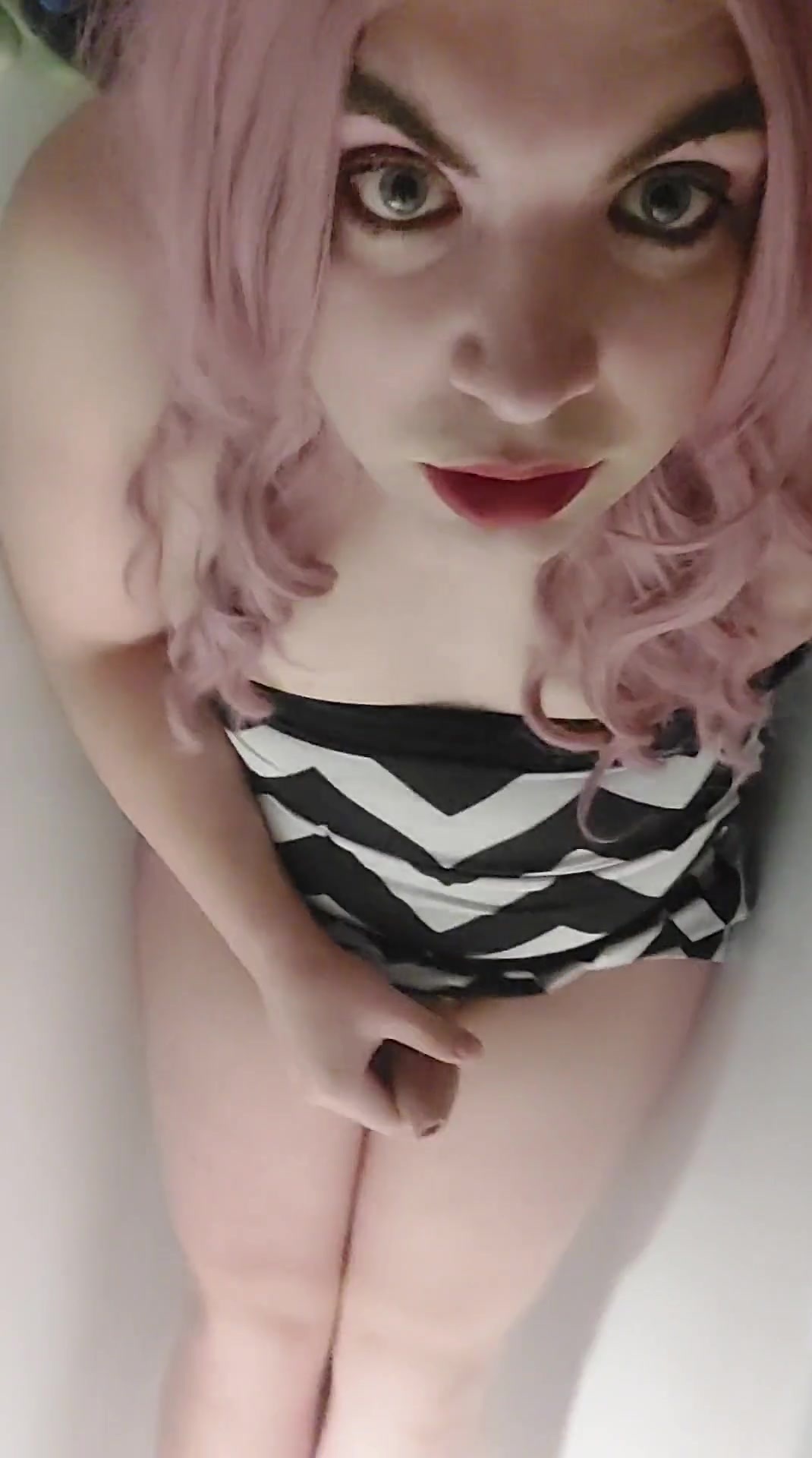 Crossdresser Juvia Jolie jacks her immense dick while she Looks at you with her pretty face