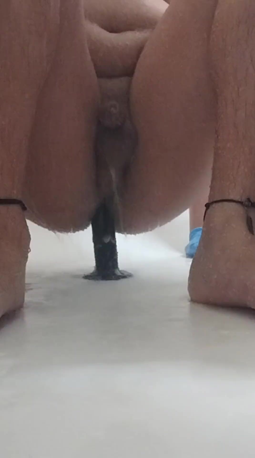 Crazy nineteen years elderly crossdresser railing large faux-cock in the bathroom