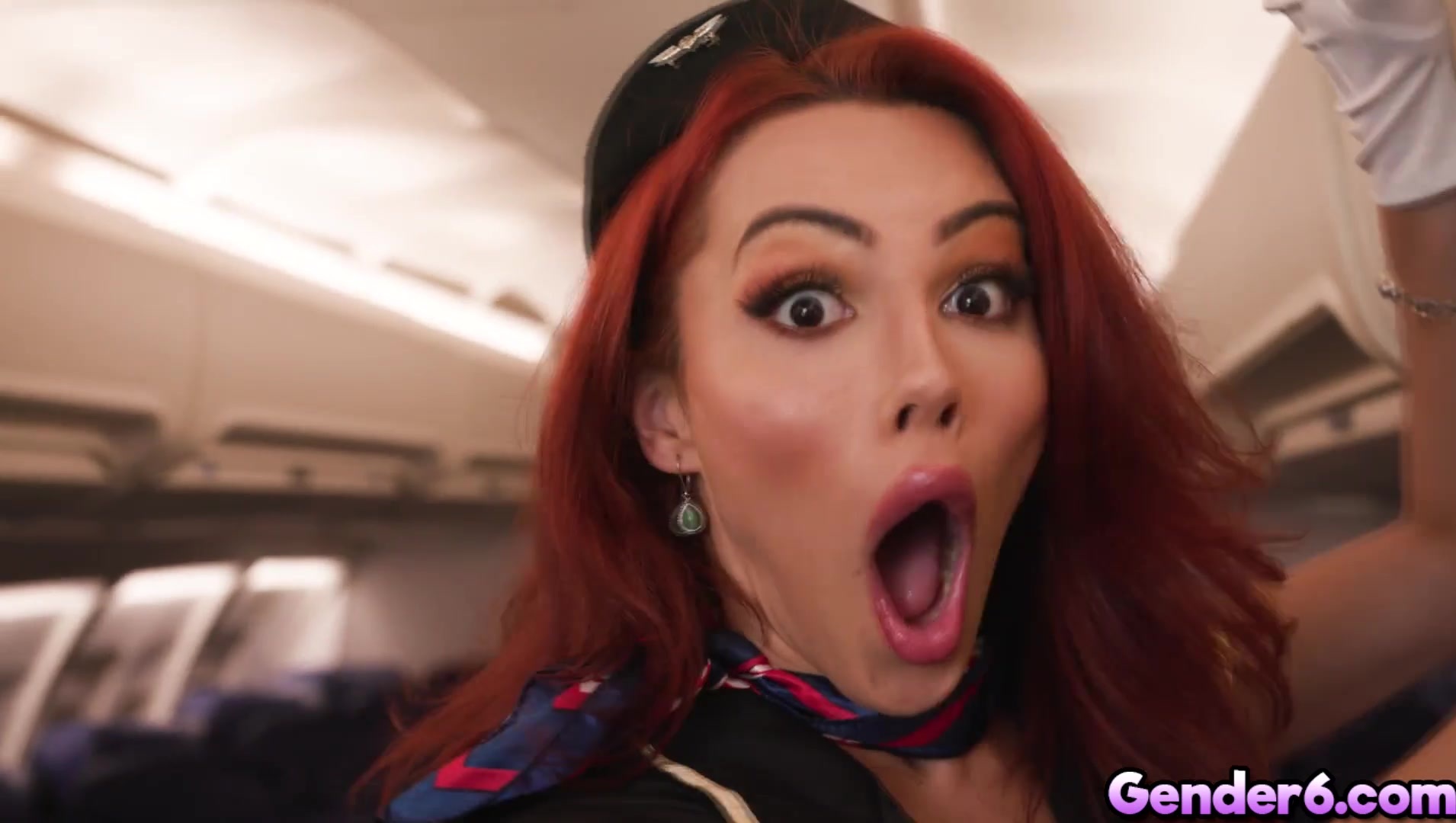 Transexual stewardess Ariel Demure is busy gives the pilot a blowjob as the passengers are calling for her attention! Next, what happens in the cabin is fucking crazy, as Ariel first fucks Codi Vore, and then Jay Tee in the toilet! The set for this scene is INSANE!