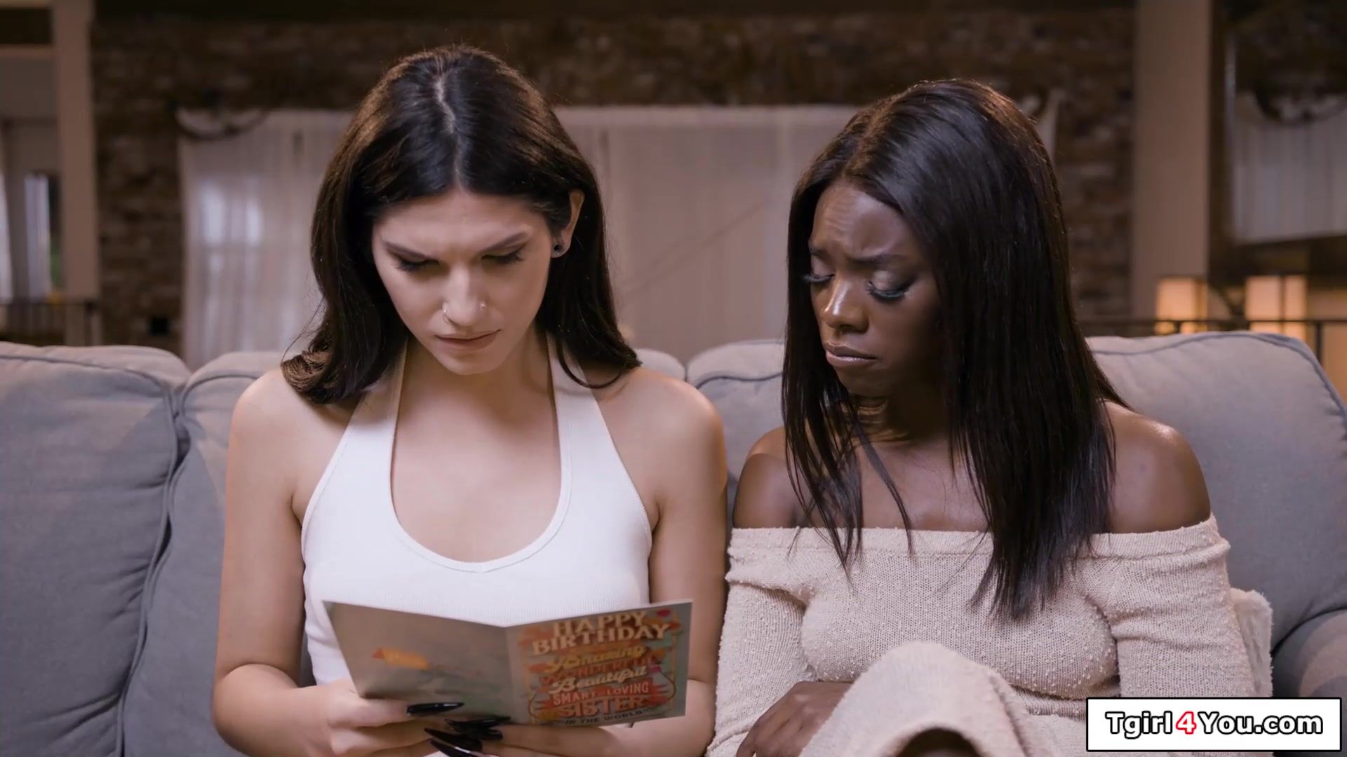 Brunette trans Zariah and her ebony gf Ana Foxxx celebrate good news with sex.The small tits tgirl gets her feet sucked and licks the black babes hairy pussy while jerking of her big tranny dick.Anna deepthroats the shemales cock and gets doggystyled