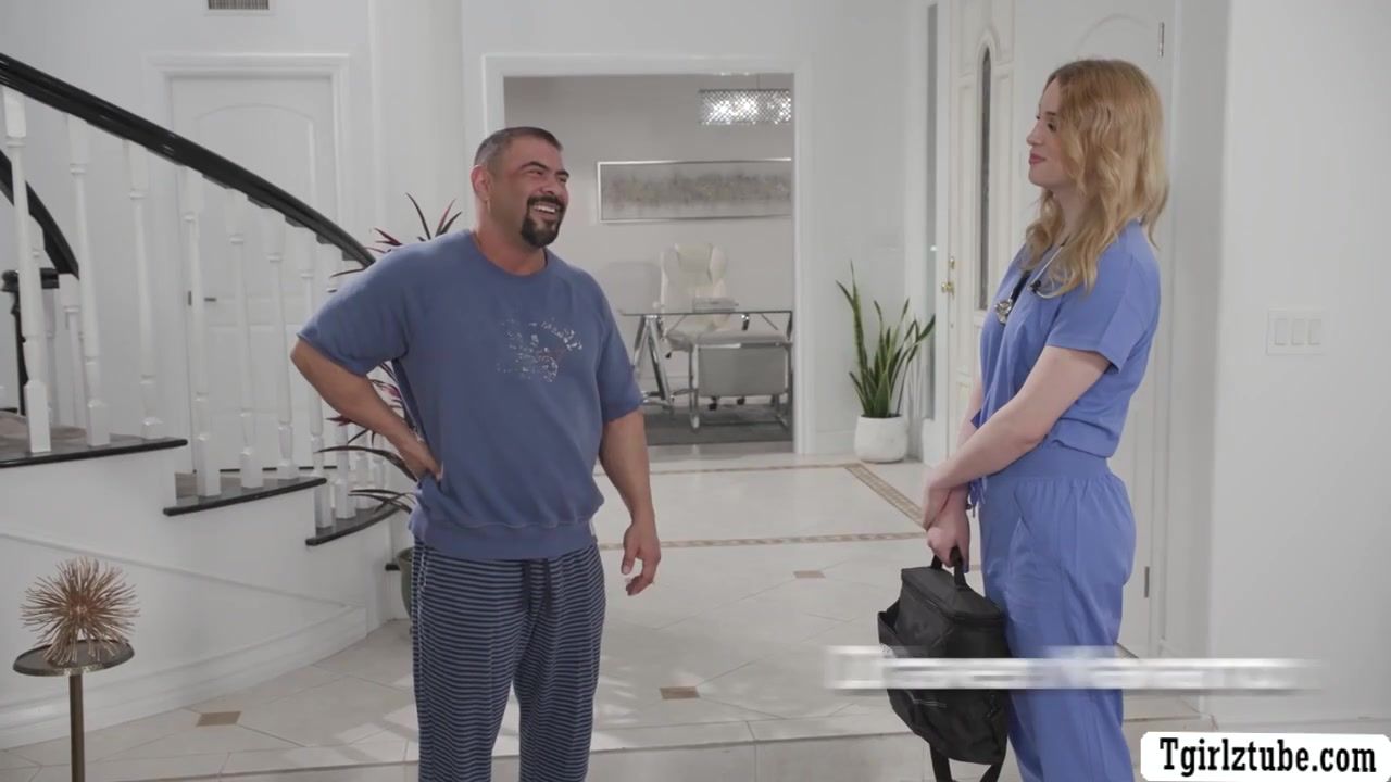 Draven Navarro calls a nurse because hes back is aching.TS nurse Erica Cherry arrives and she then massage her back.After that,she throats his dick passionately and lets him lick and fuck her asshole.Go to tgirlztube.com for discount and more.