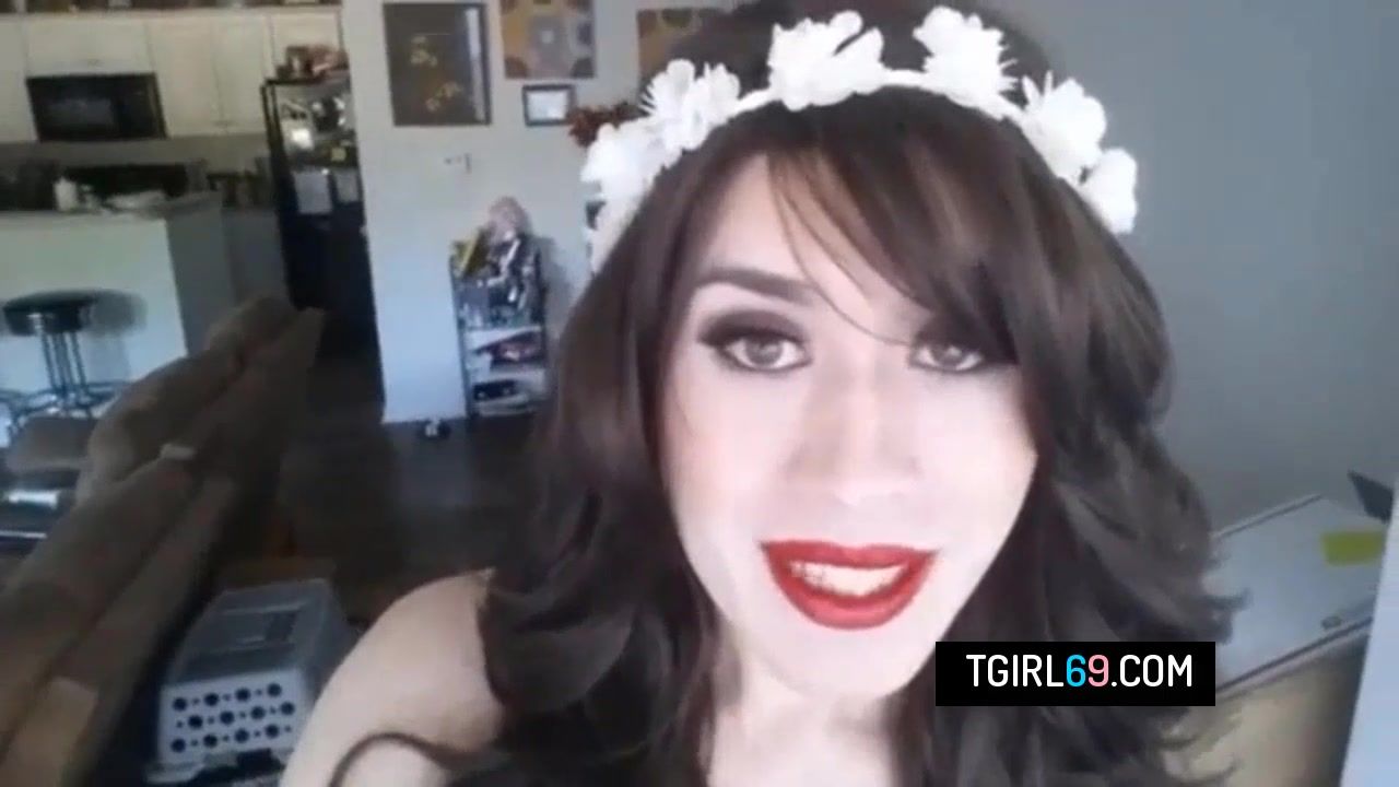 Beautiful sissy trap strokes her shecock and cumshot on cam