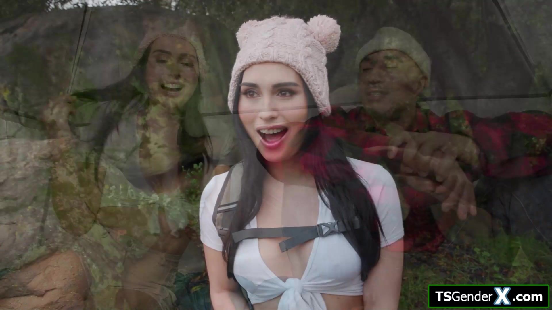Big tits Asian tgirl Ember Fiera is all alone with her date in a tent while its raining.The busty shemale is horny and gets her trans cock sucked.The brunette tranny deepthroats his big black cock and enjoys the feeling of a bbc anal barebacking her