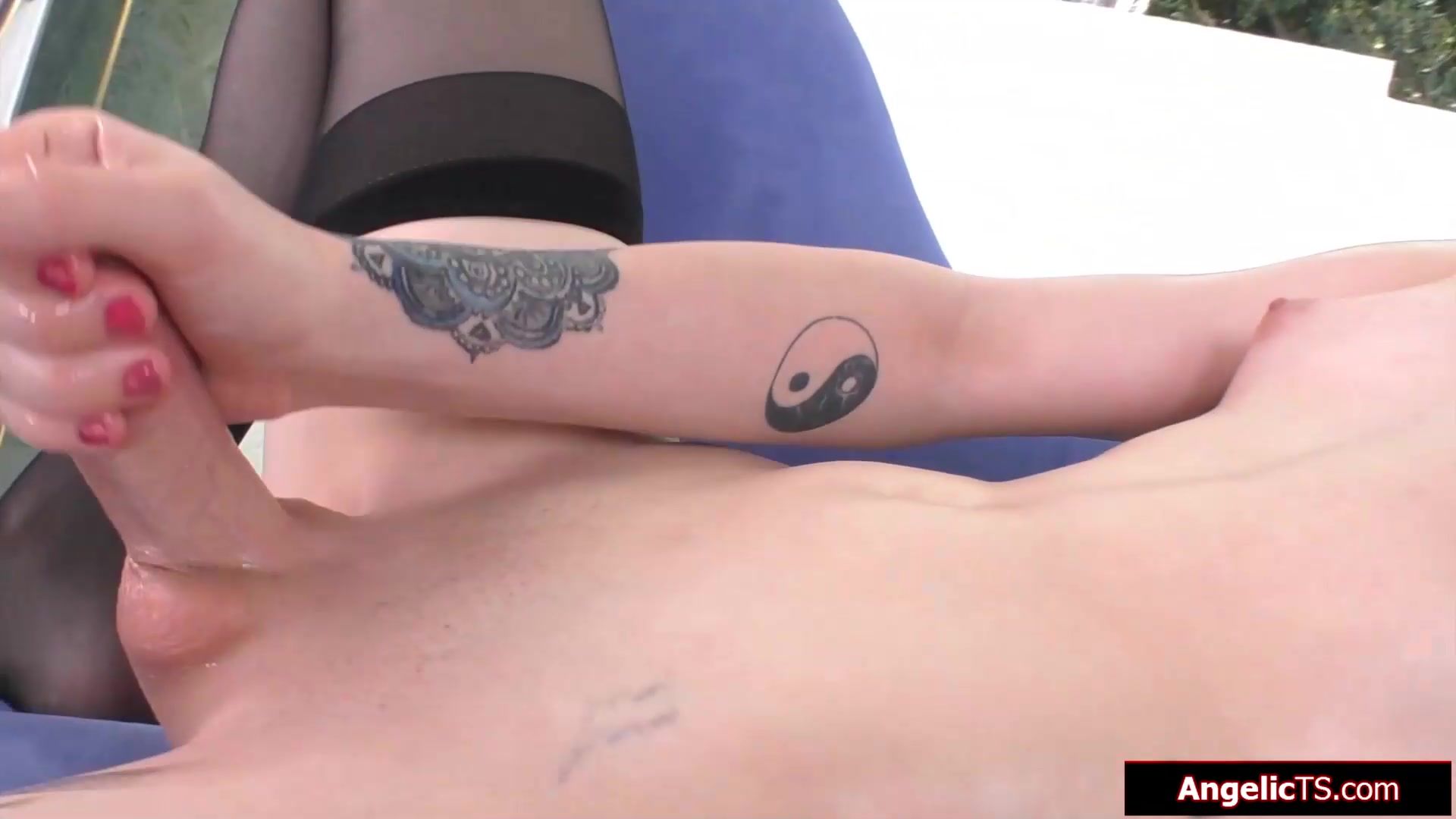 Fit shemale babe Annabelle Lane reveils her small perky tits.The tgirl puts her hand down her panties and jerks herself off.The blonde trans masturbates her oiled up tranny cock and bends over to anal fuck her tight asshole with a dildo