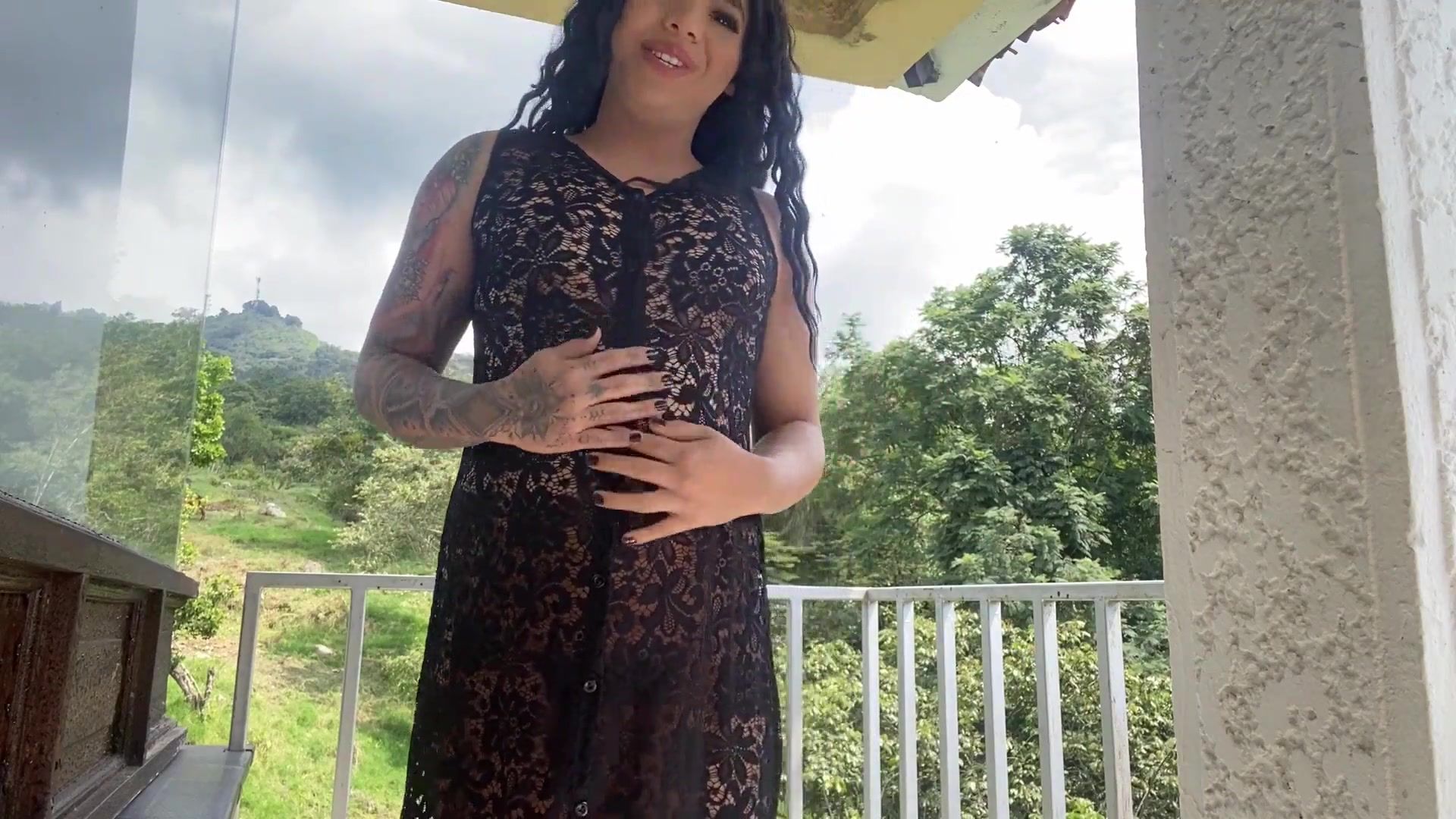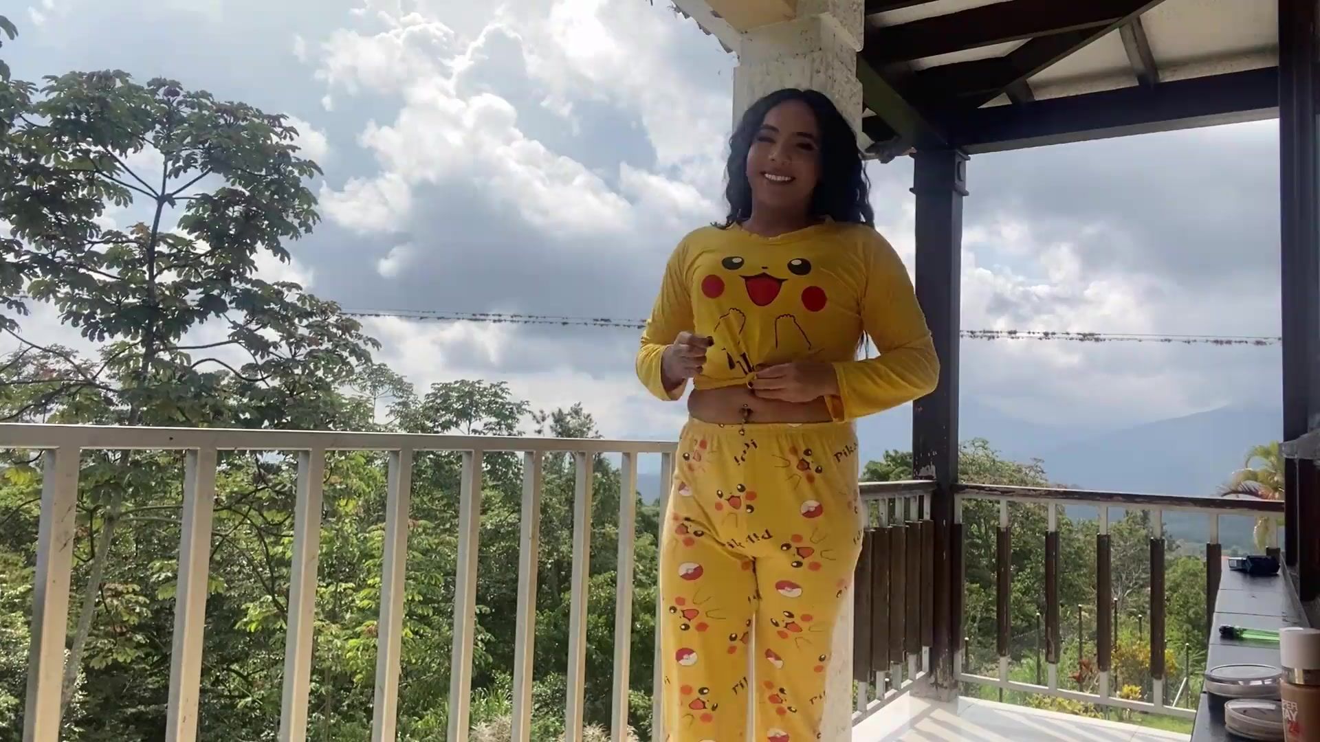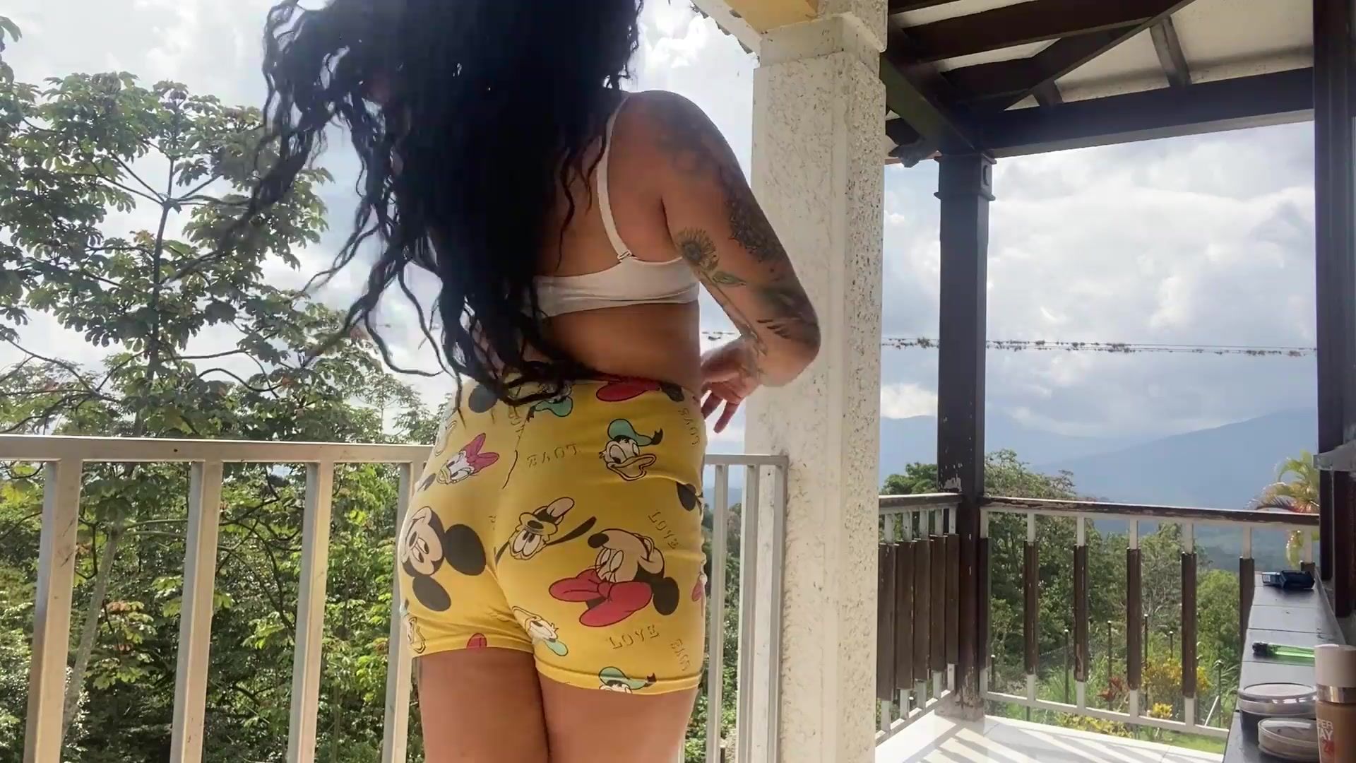 Fantastic gal measuring her clothes with her thick package