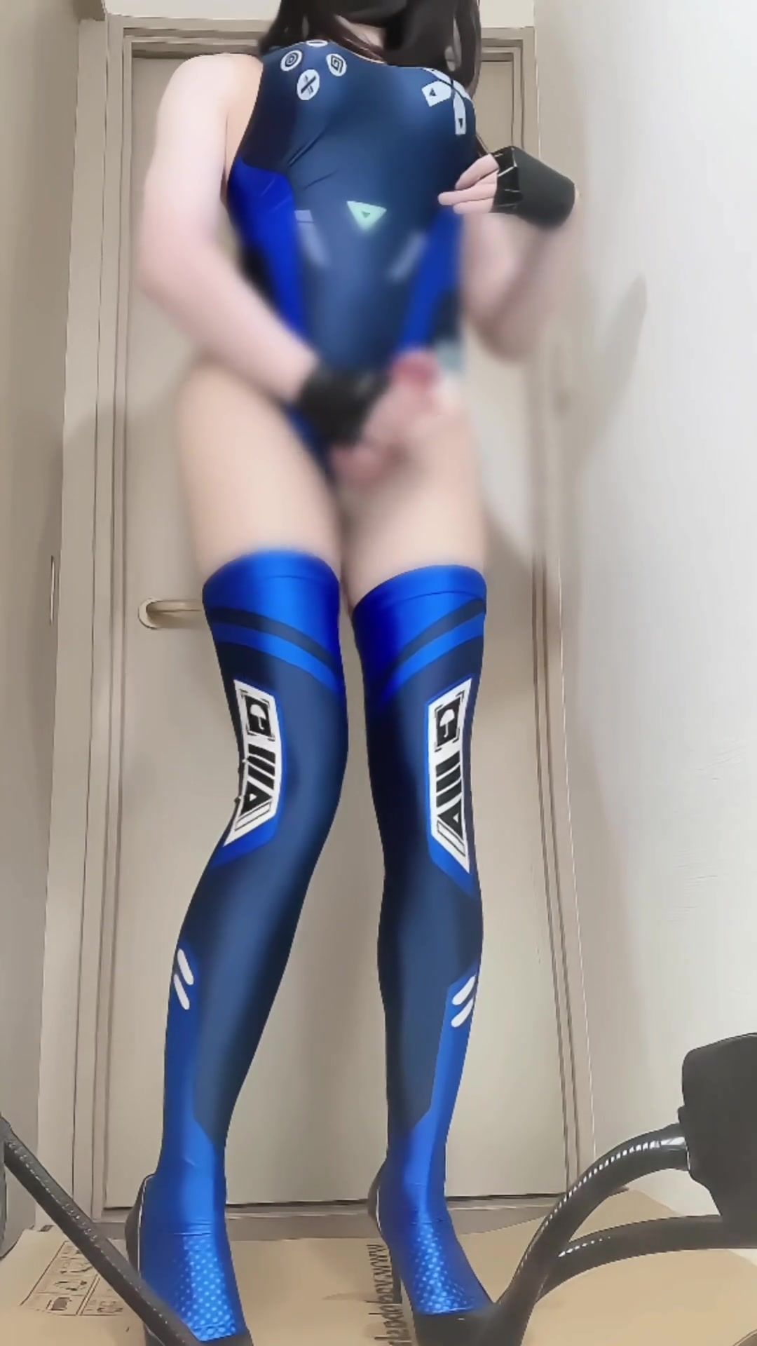 A Japanese femboy in a magnificent cyberpunk costume jacks