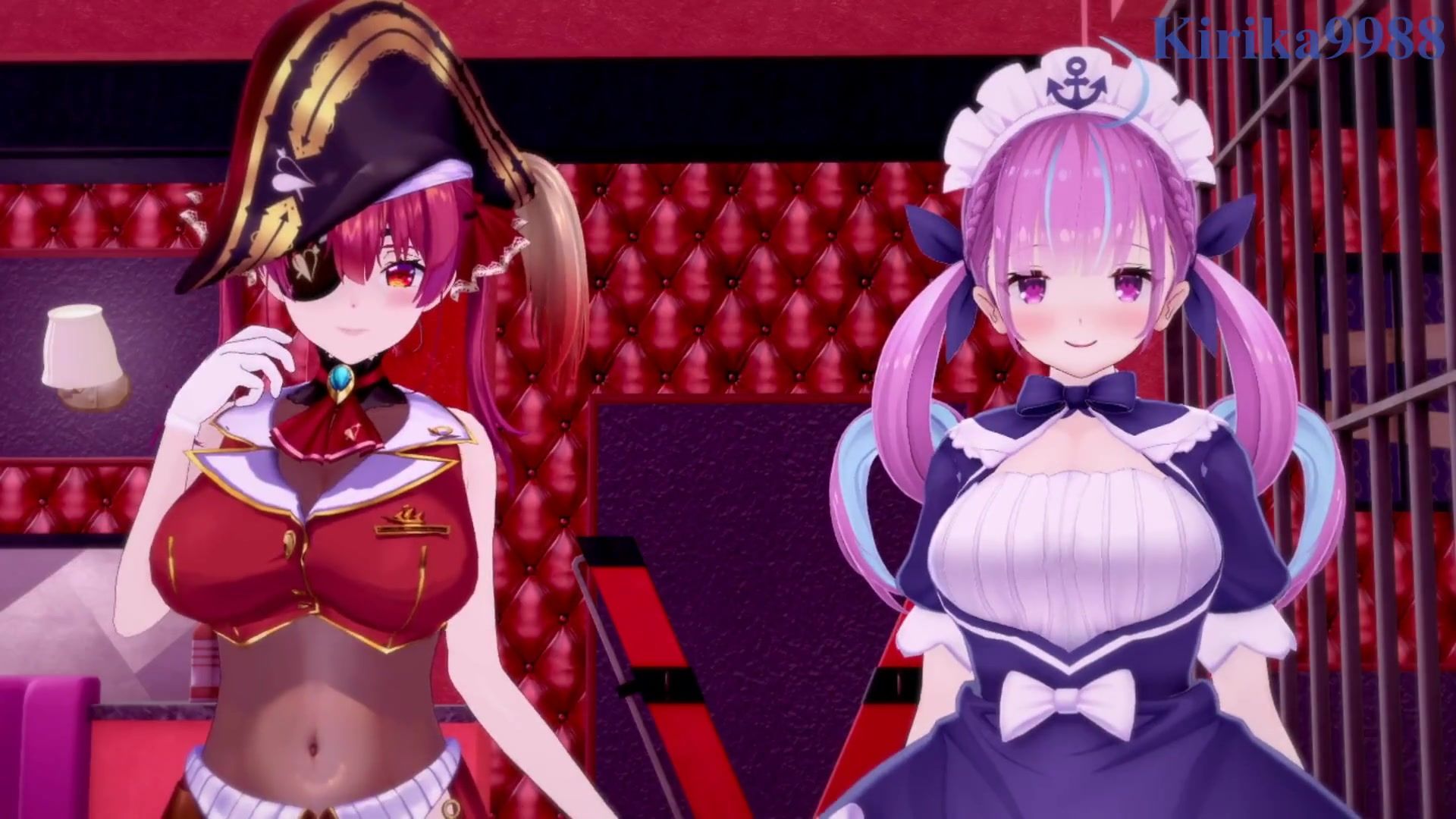 Minato Aqua and Houshou Marine have mighty hermaphroditism hookup in a secret guest room. - Hololive VTuber Manga porn