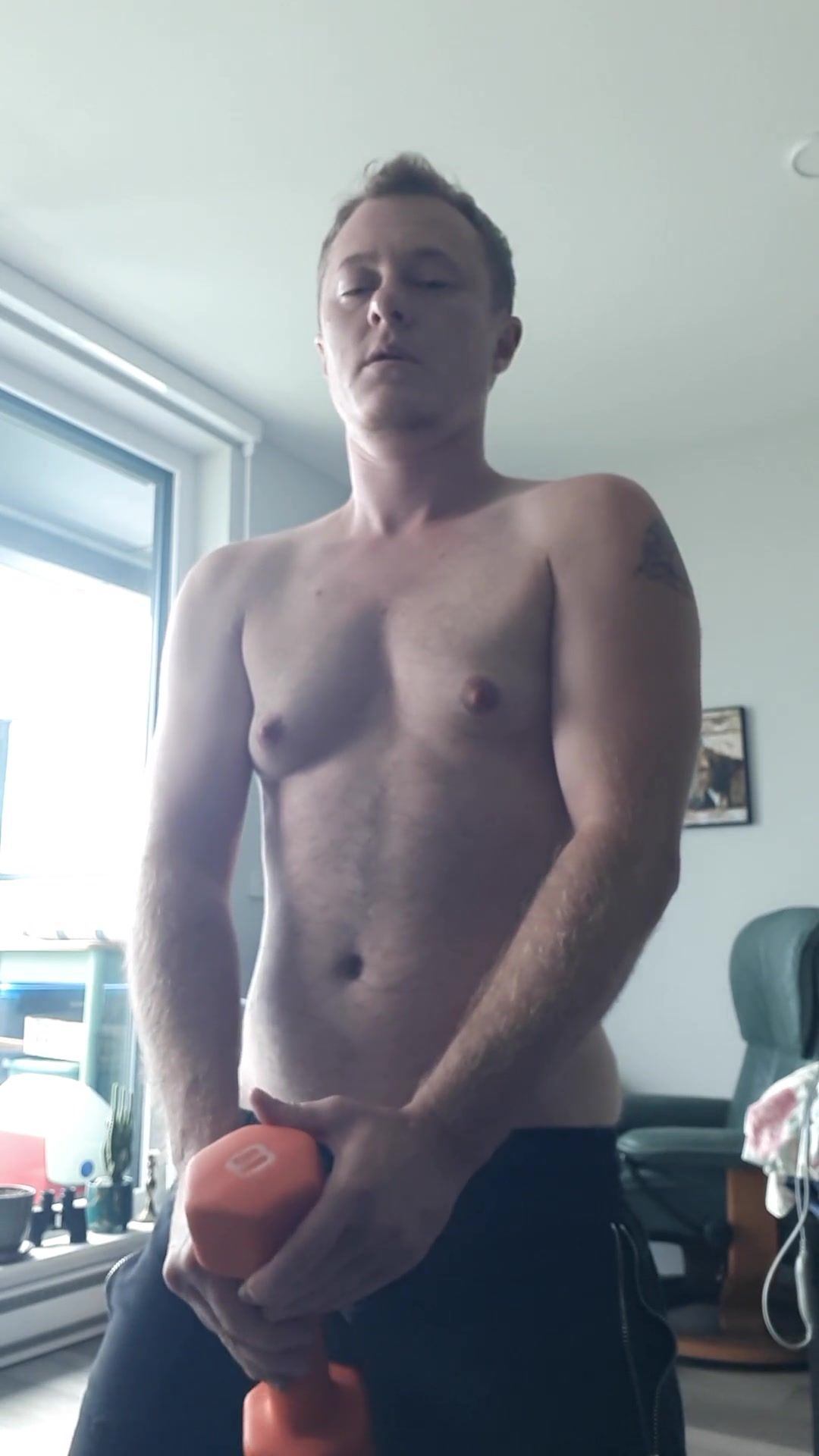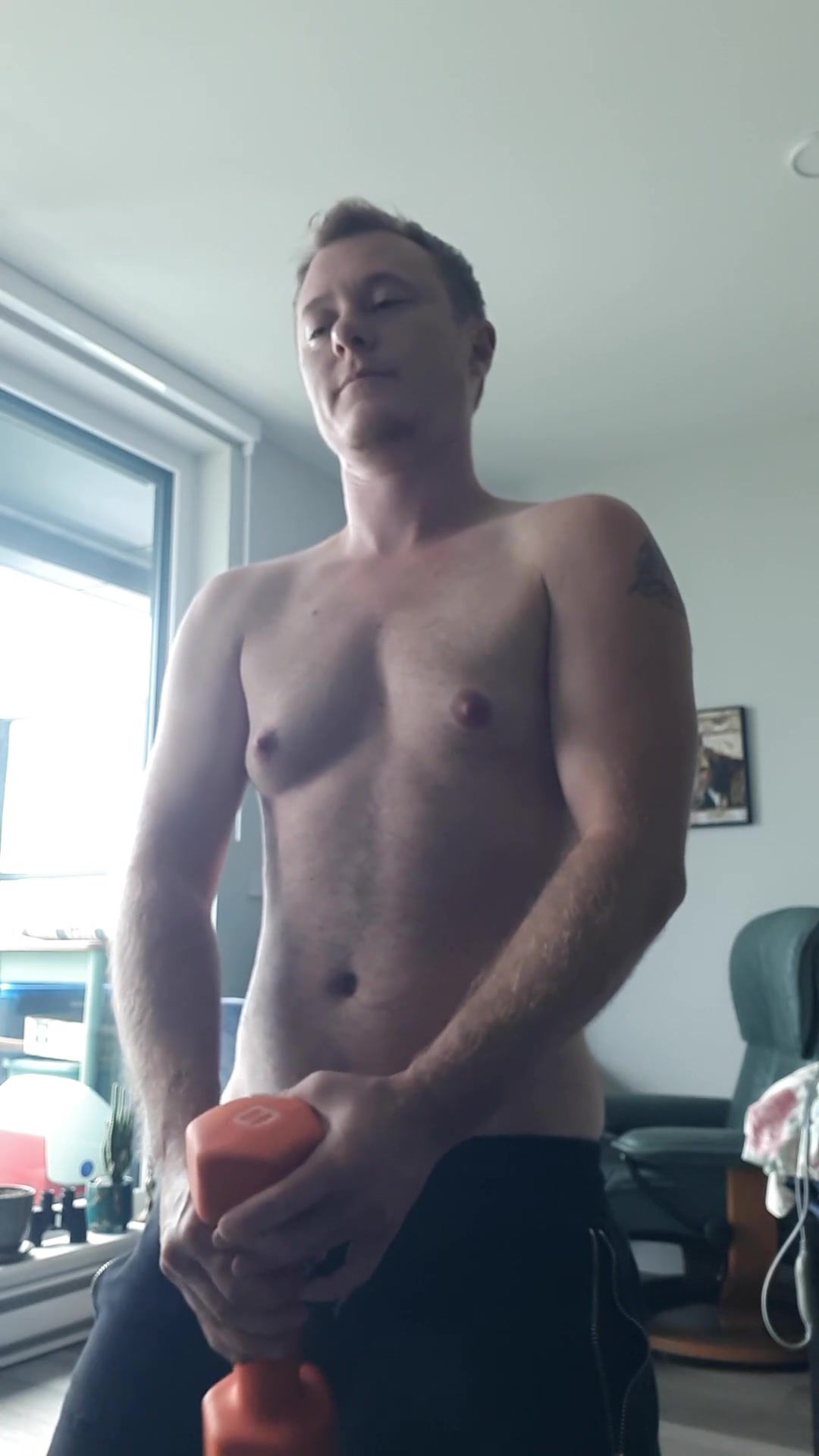 Desperate Trans Jock Knocks His Shaft Around With A Dumbbell!