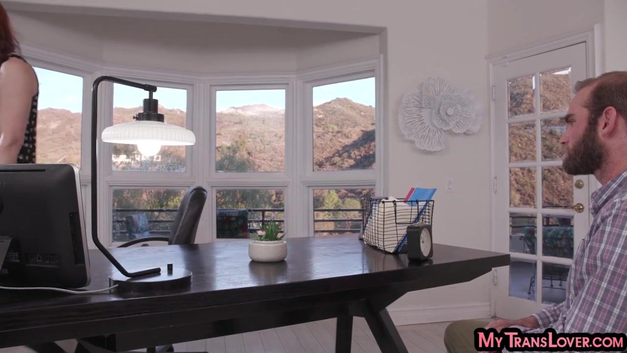 TS redhead anal lover in sexy lingerie gets fucked in ass