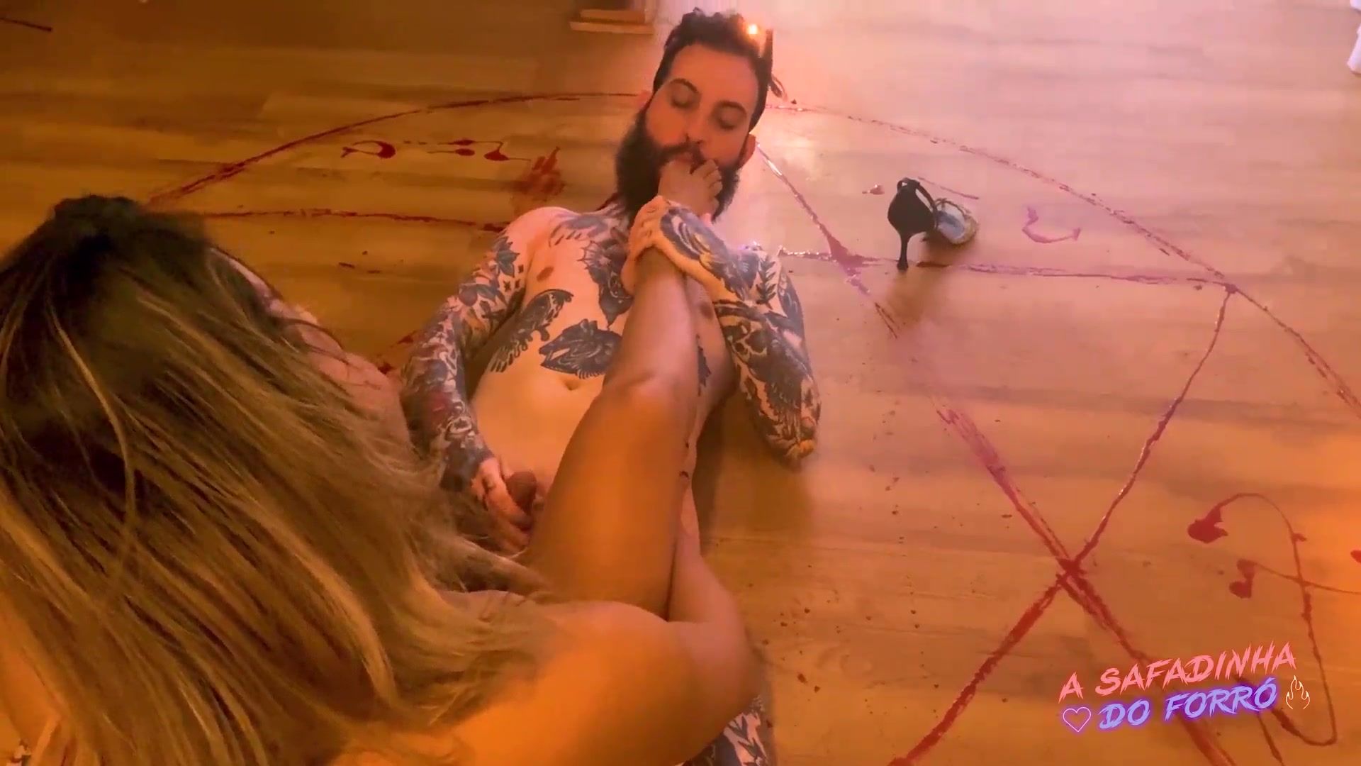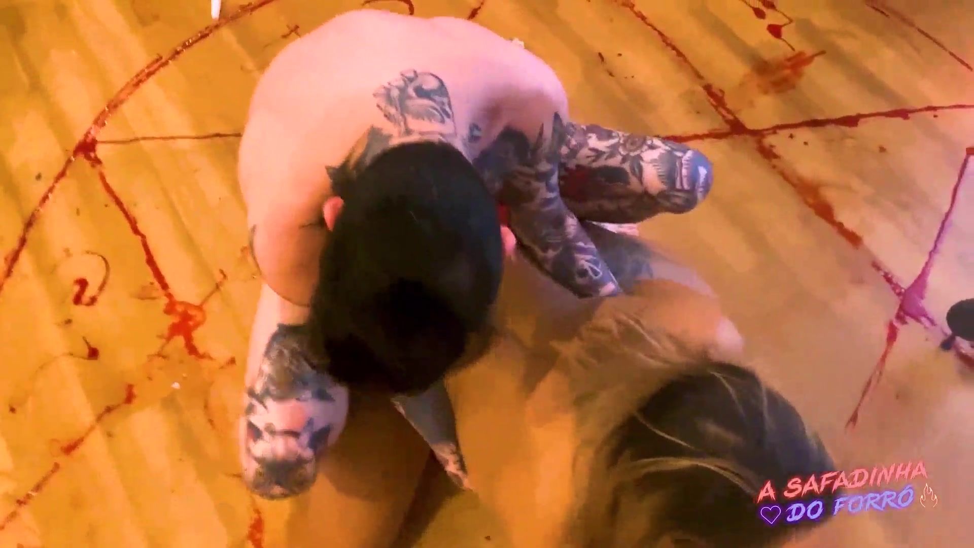 Inked blondie ladyboy porked by her hottest pal on web cam