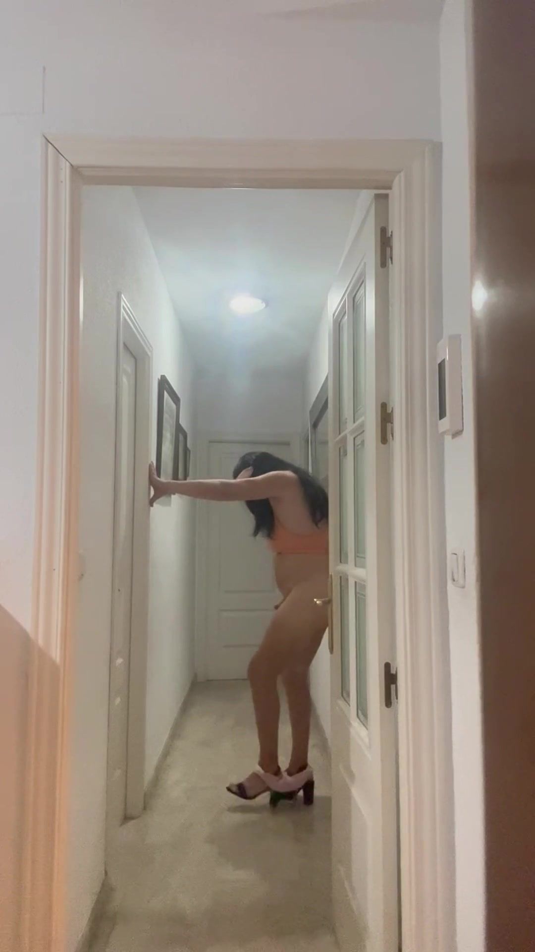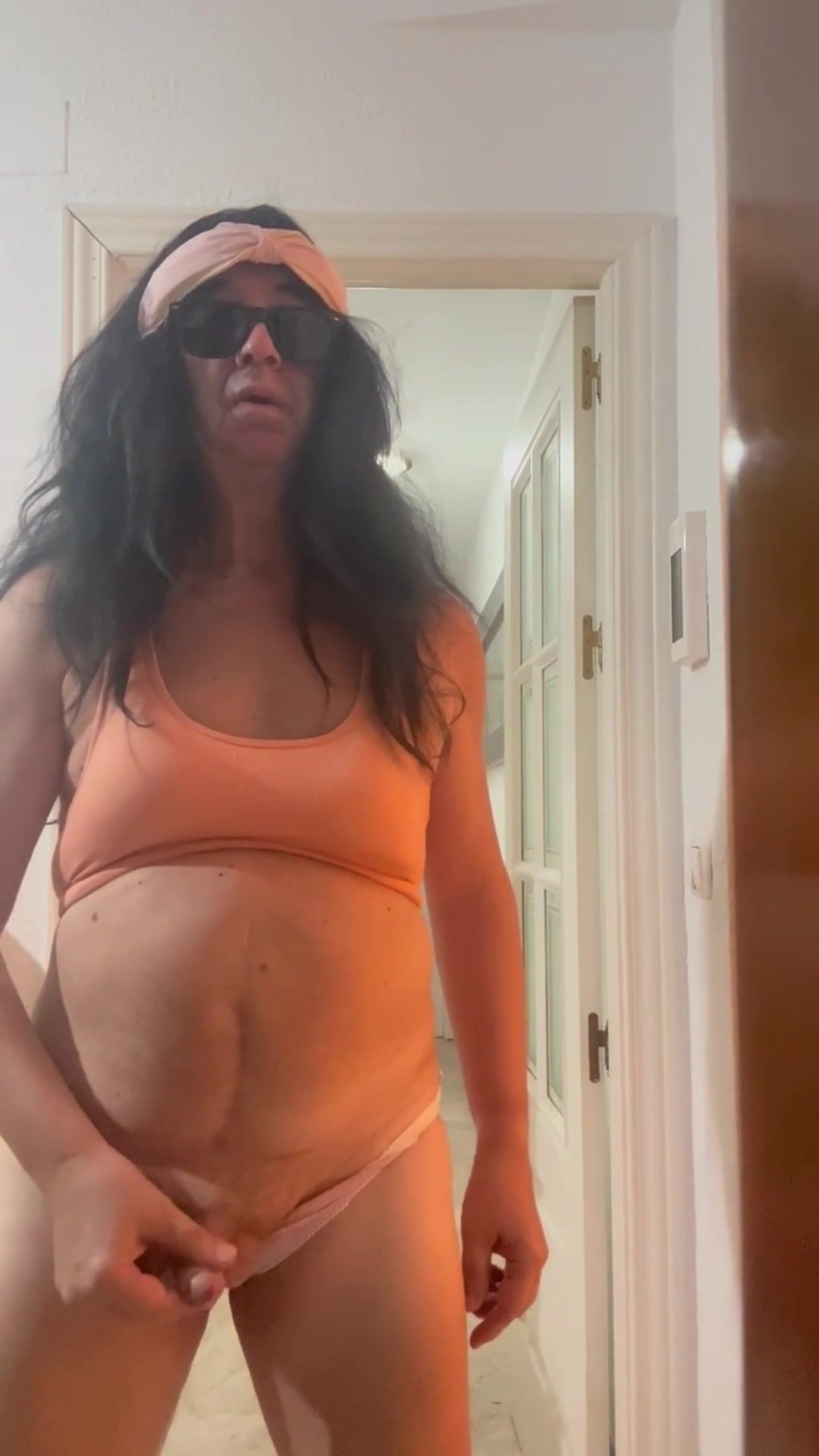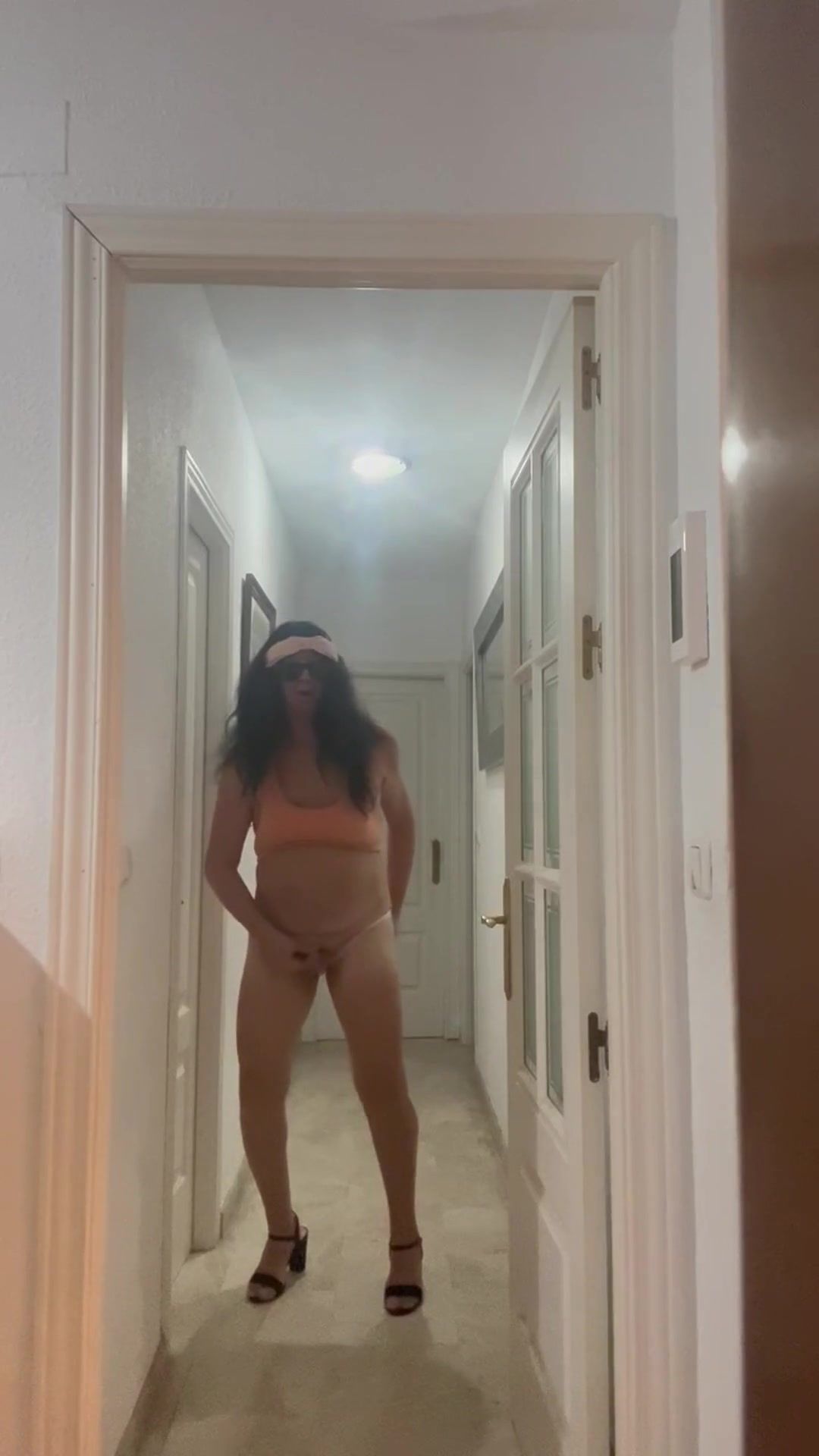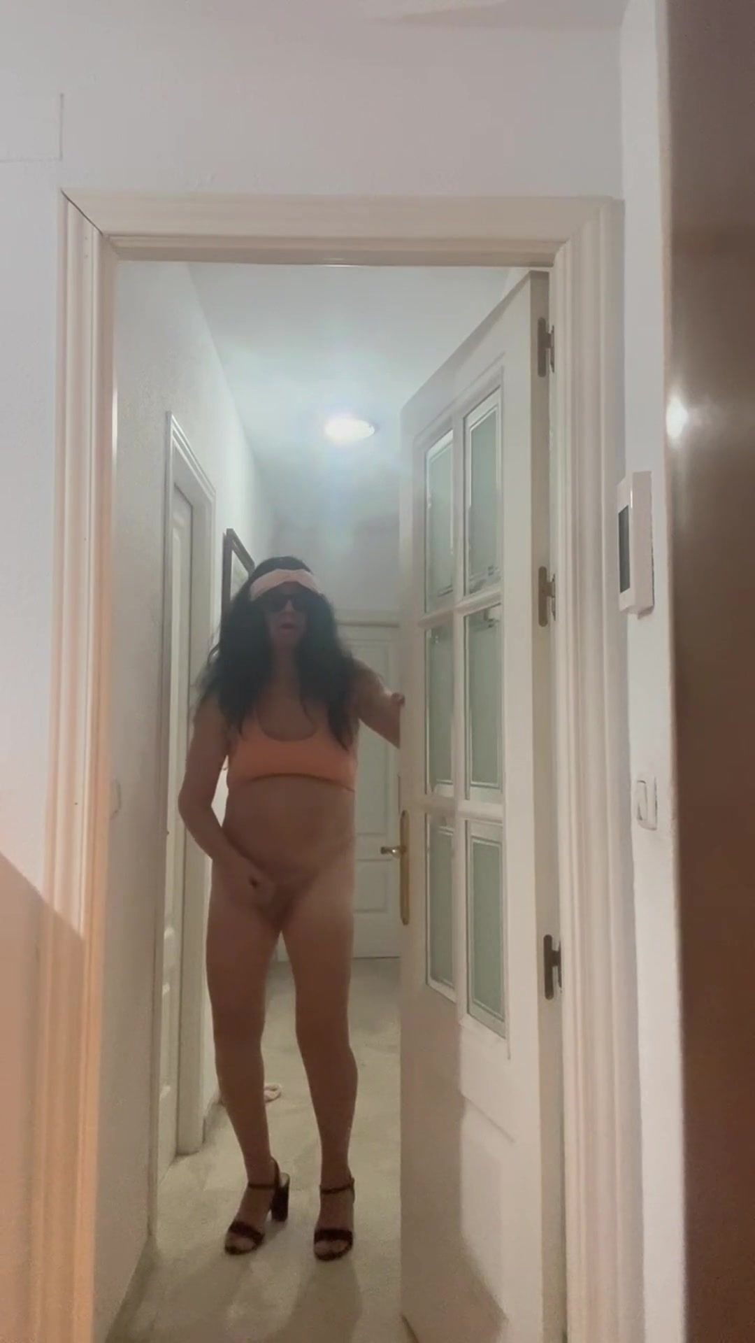Daniela Monroe TV, Spanish tranny, poses magnificent and super-steamy, spunks in the ass-pipe, platform high-heeled shoes, buttfuck