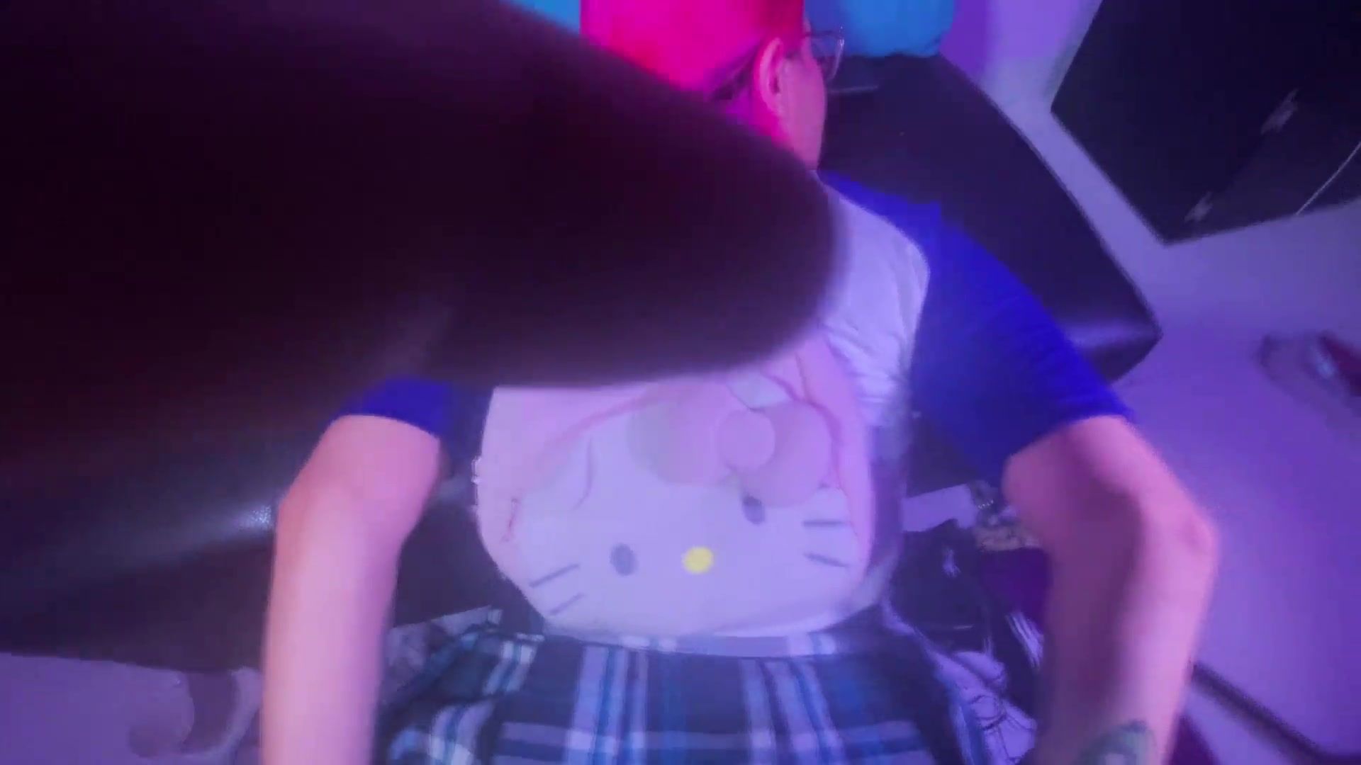 Brief Micro-Skirt Ass-Fuck with ginormous fake penis & climax over the floor