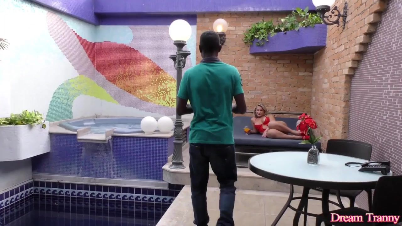 Platinum-Blonde Tgirl Pamela Lenvisk Gets Boinked Firm with a Massive Dark-Hued Tr...