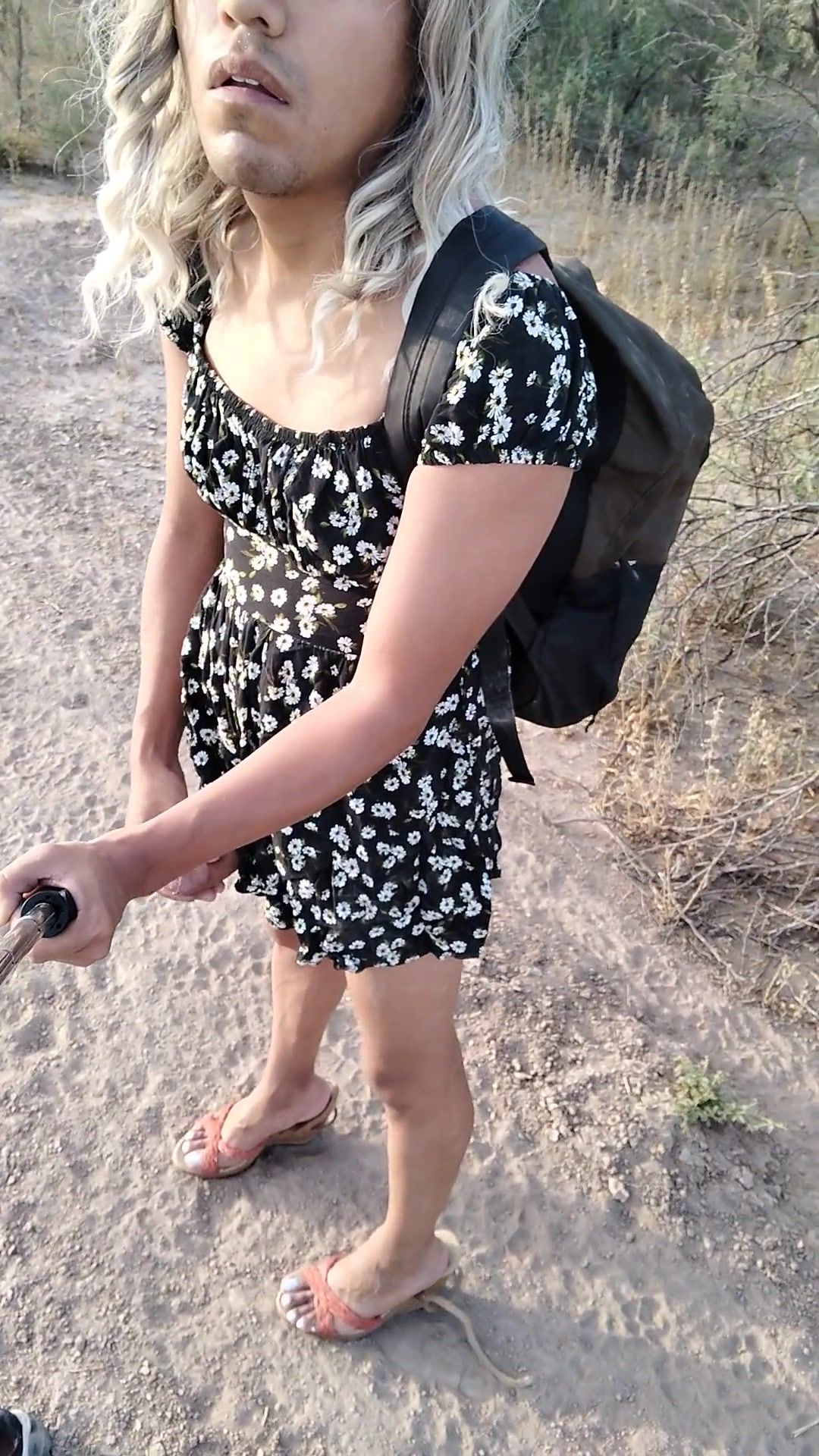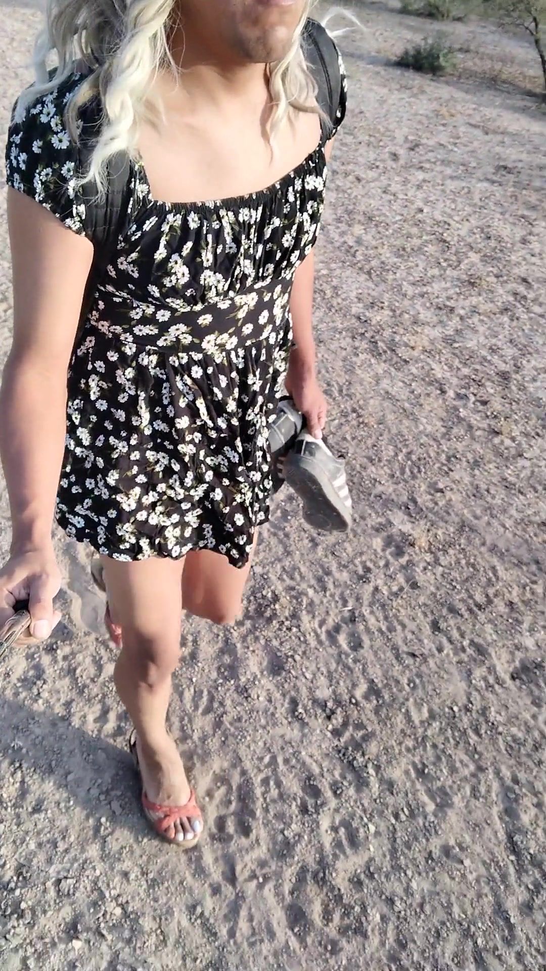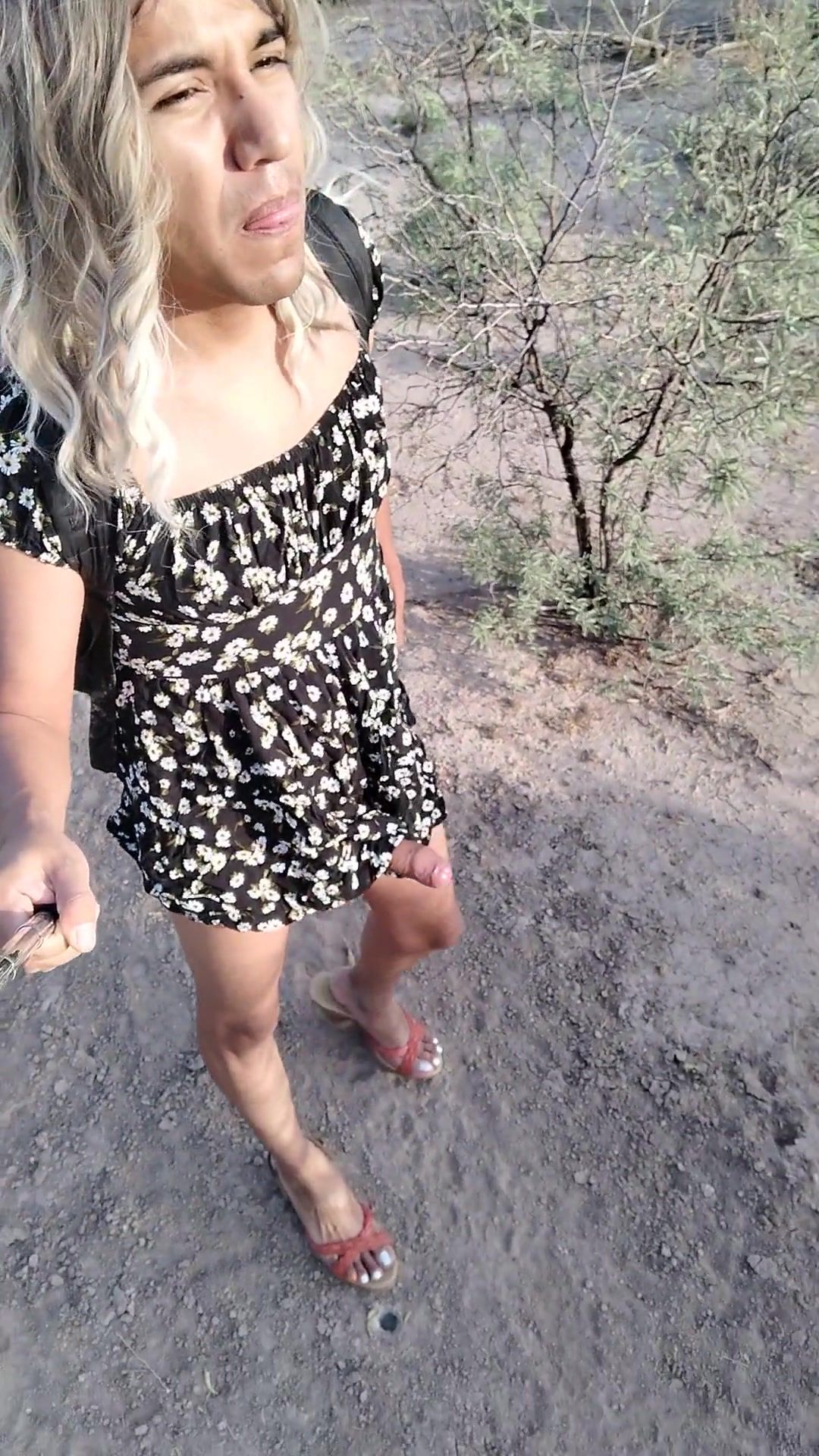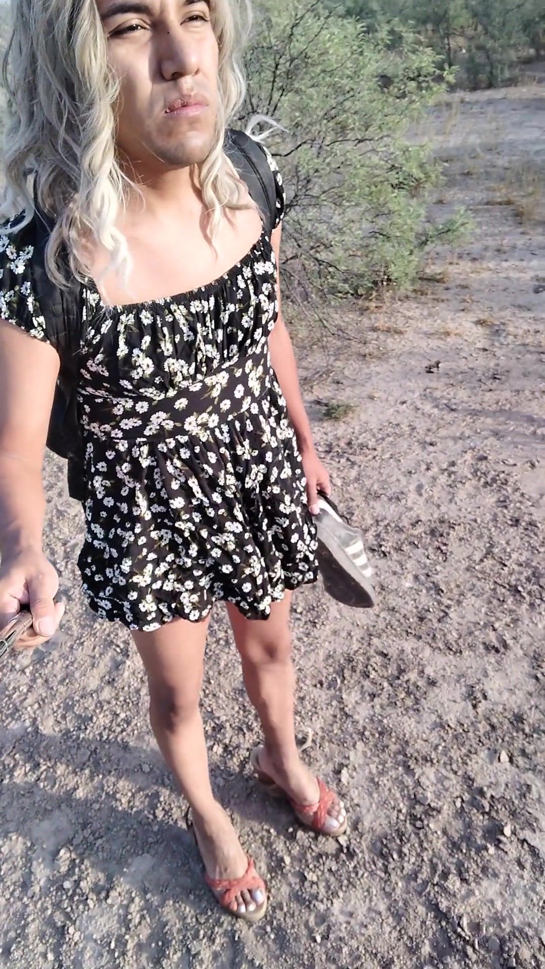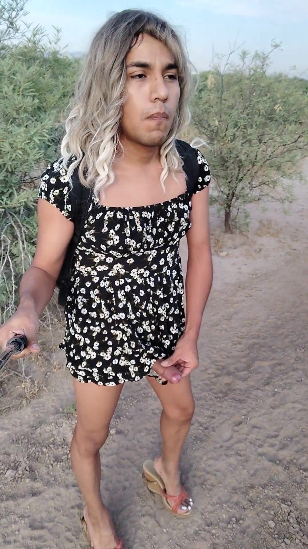 dulce travesti con minivestido y sandalias de plataforma camina stunning en publico