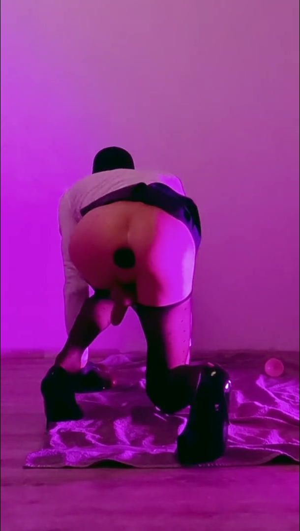 Assfucking Ass-plug, Black Fake penis, and Wide open Joy in Leather Mini Microskirt