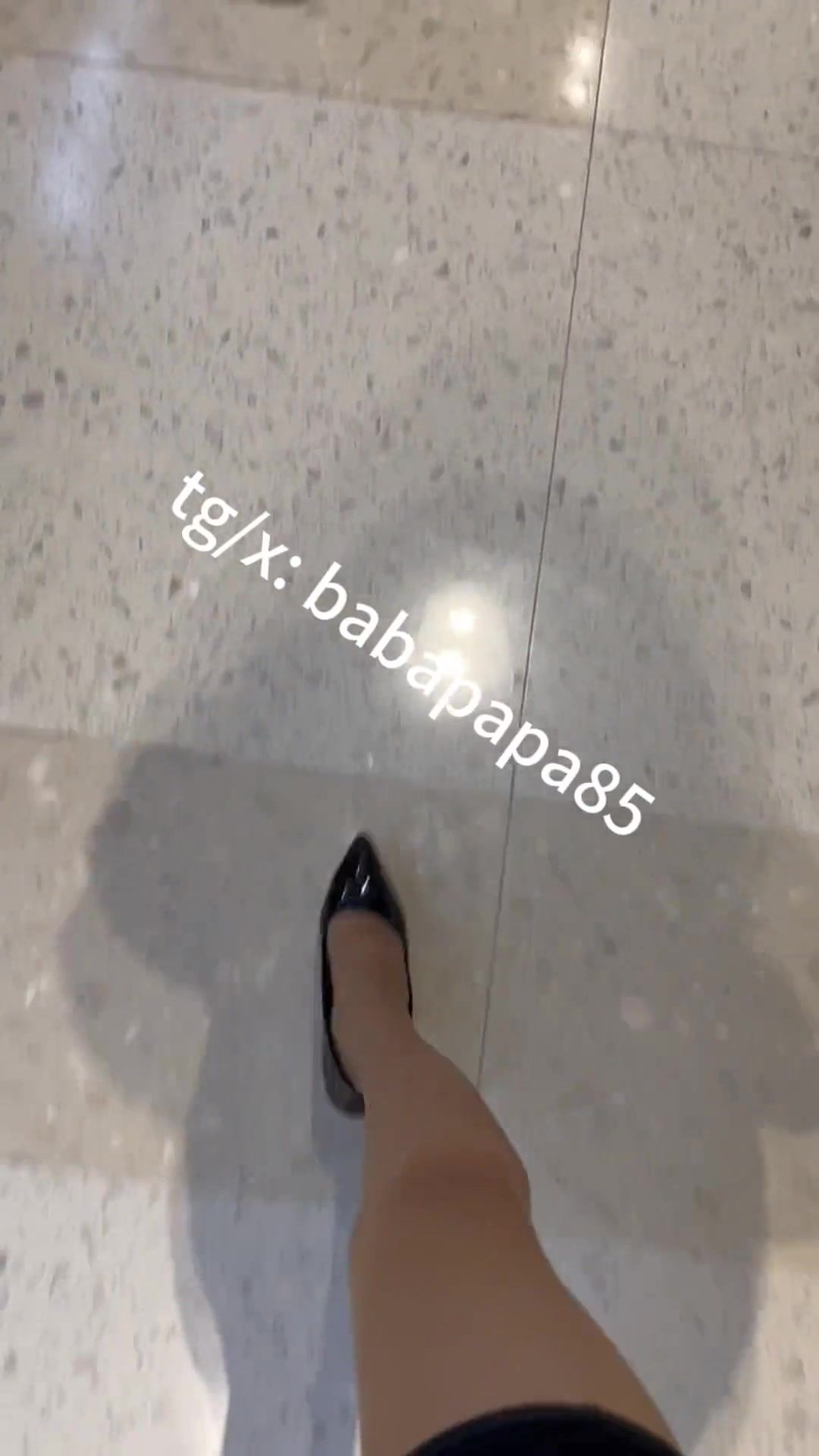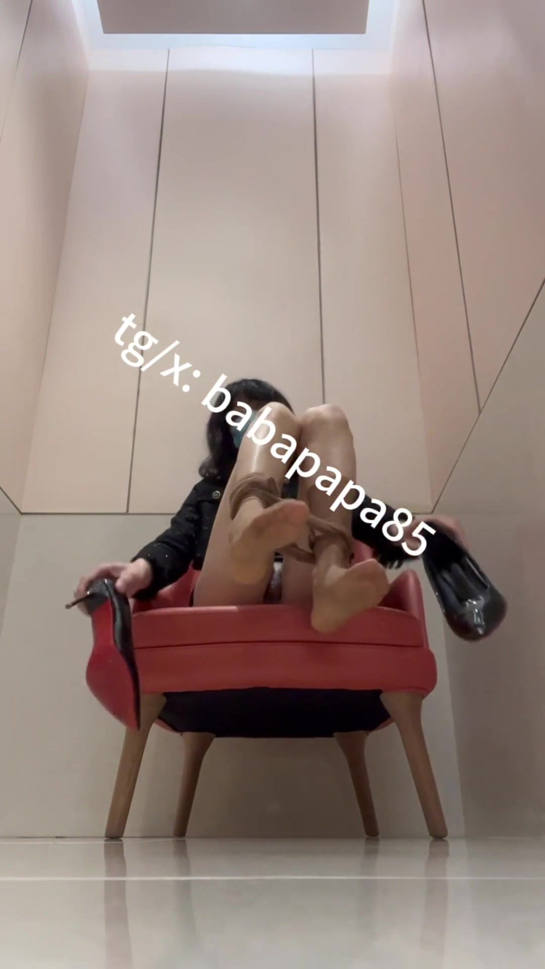 Black sundress dark-skinned pantyhose crimson bottom high high-heeled shoes, coquettish at shopping mall dressing apartment