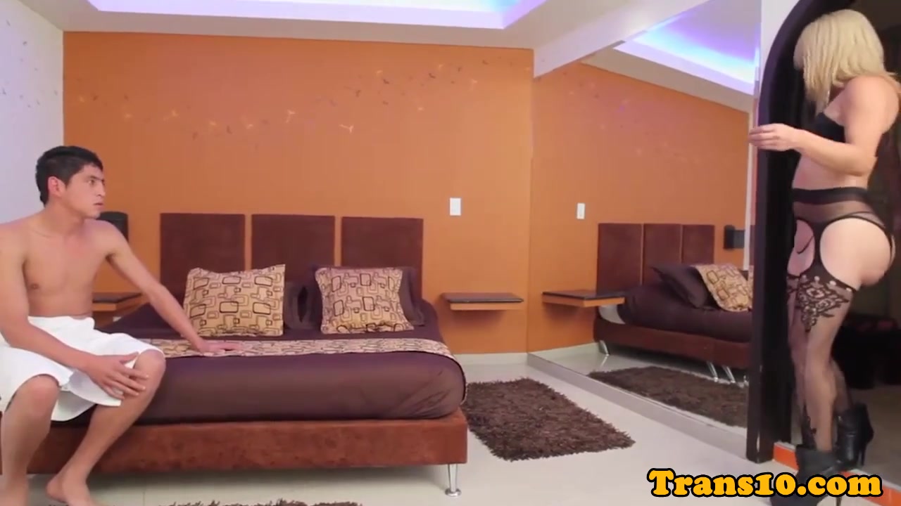 Super-Steamy Latina transgender princess in super-sexy underwear draining off all ...